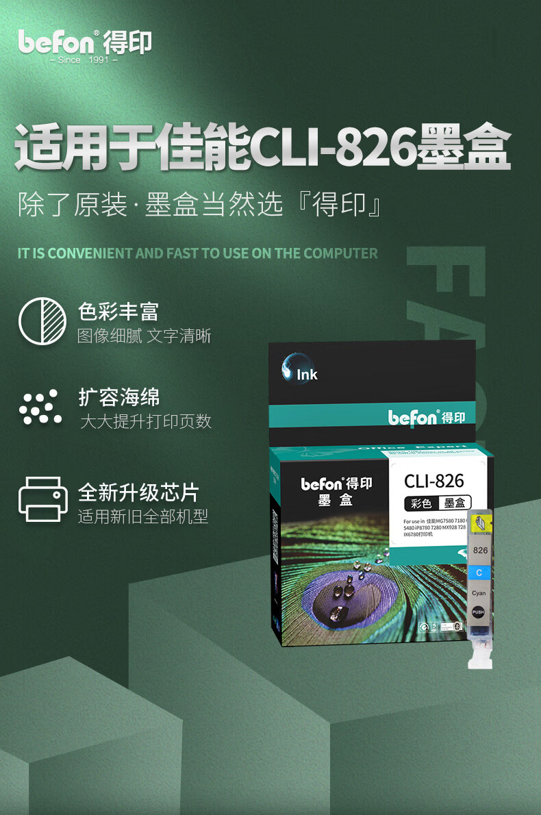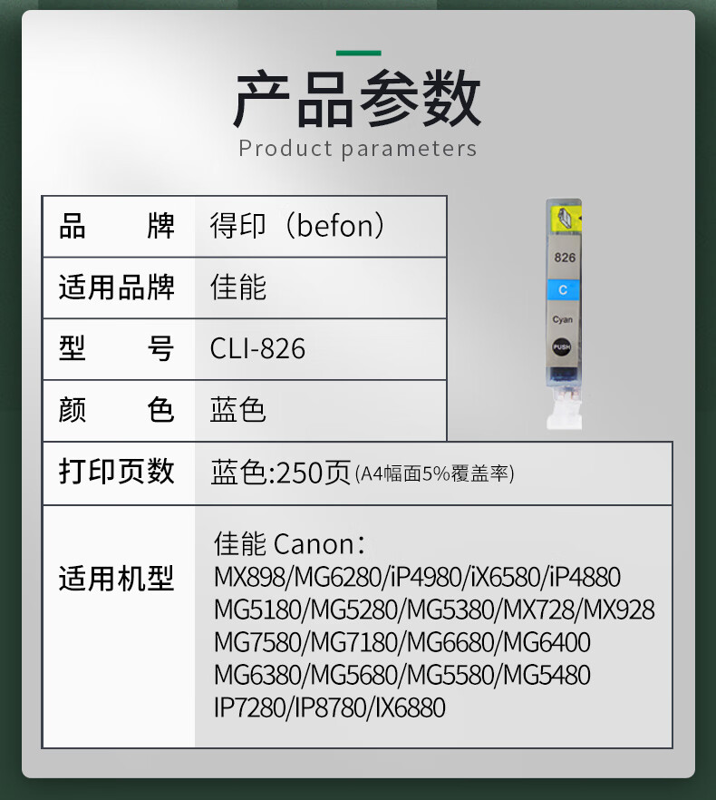 得印CLI-826墨盒 蓝色大容量250页 蓝色