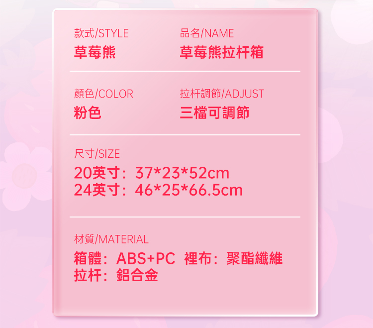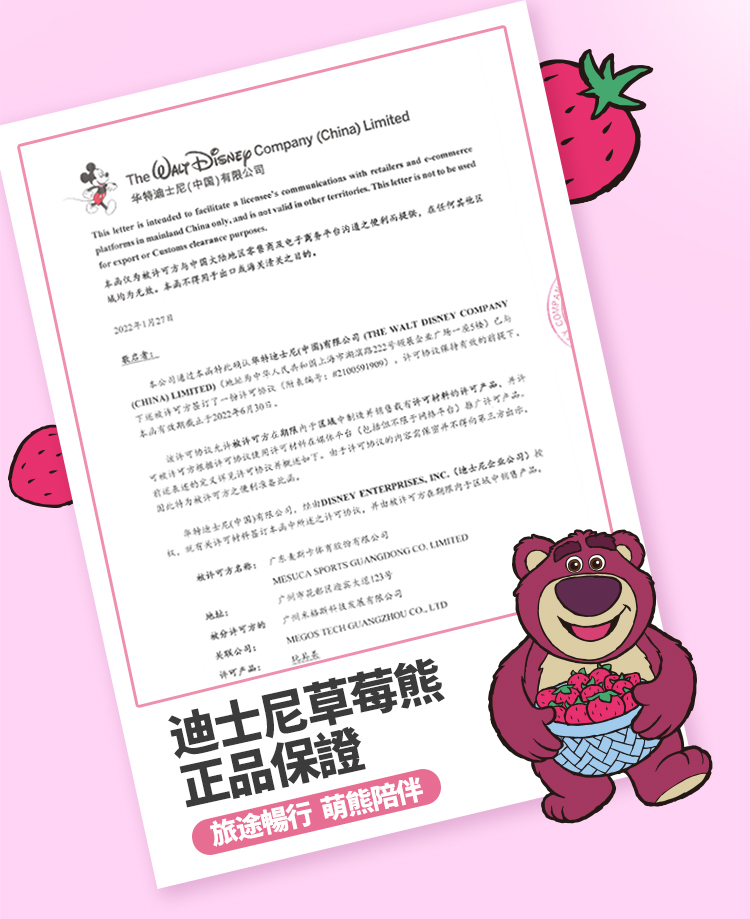 迪士尼DH22689-LO1草莓熊系列拉杆箱玫红24寸 玫瑰红色 24寸