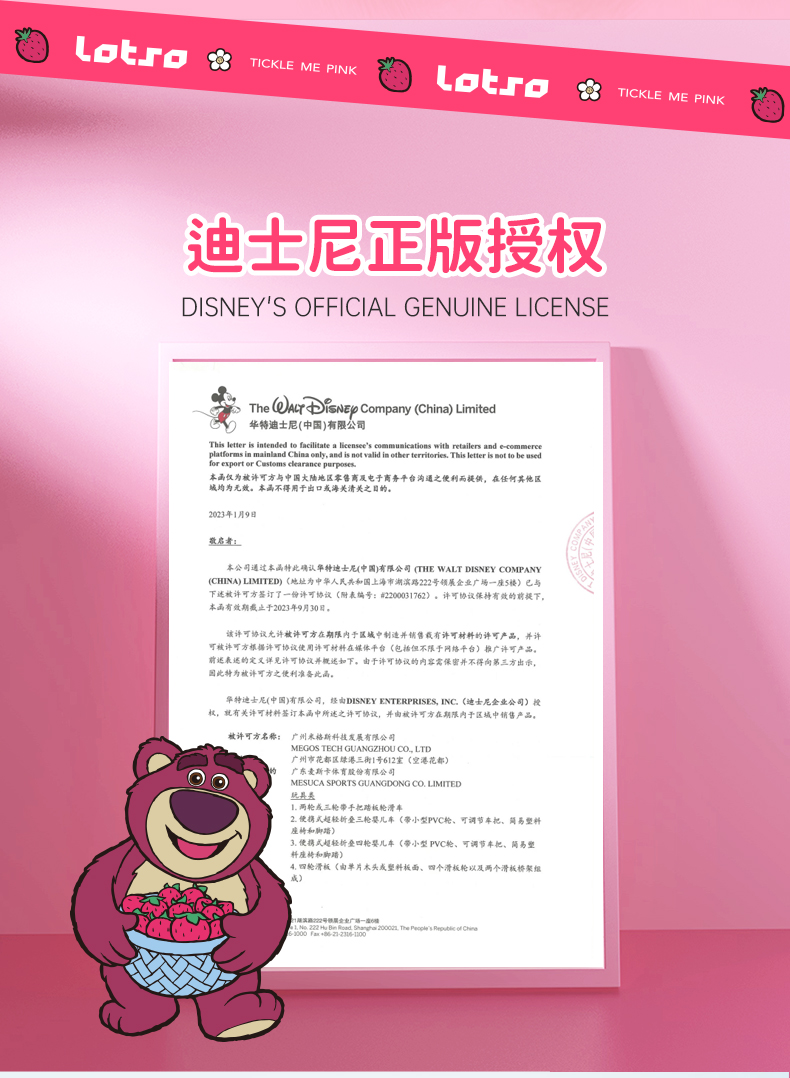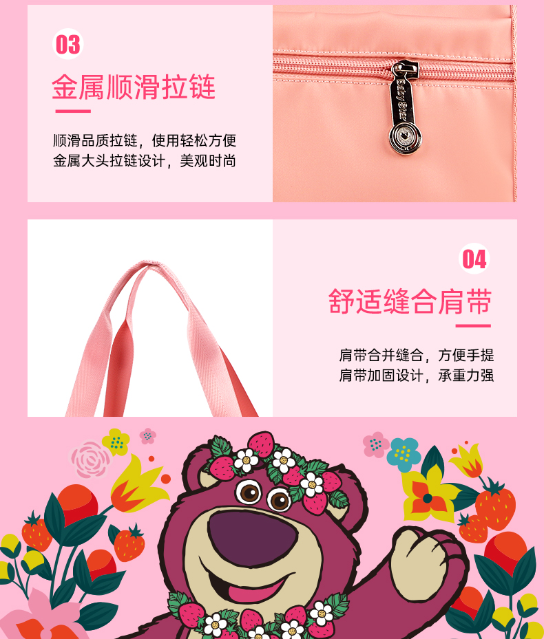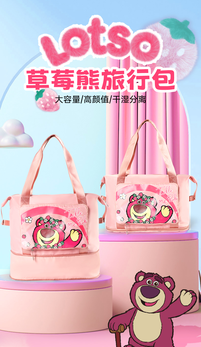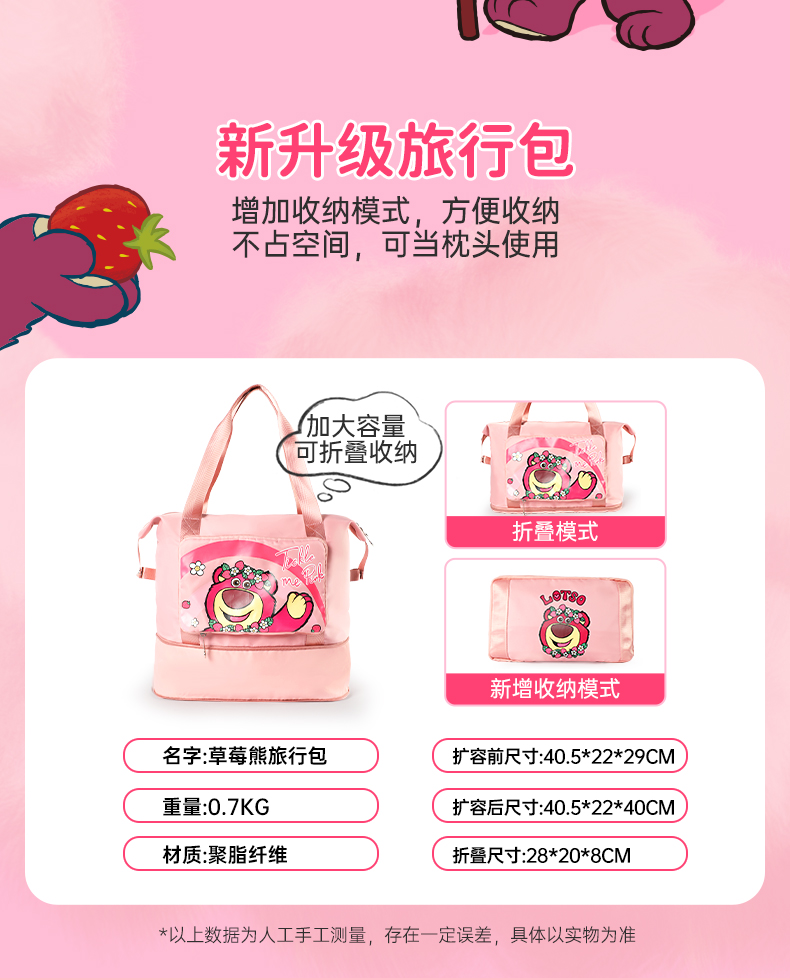 迪士尼草莓熊系列旅行包DHG23110-LO2 玫瑰红色