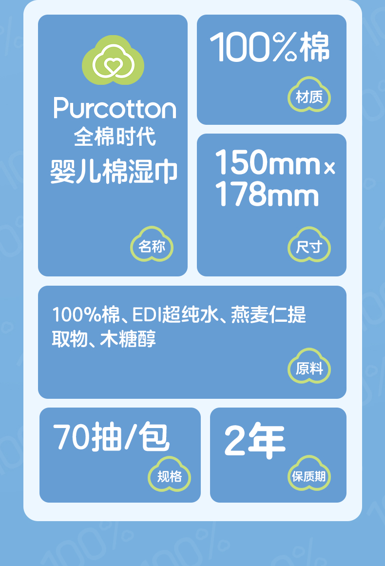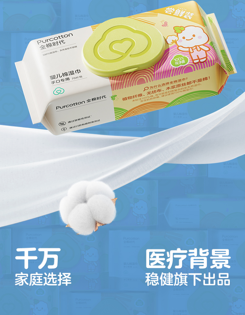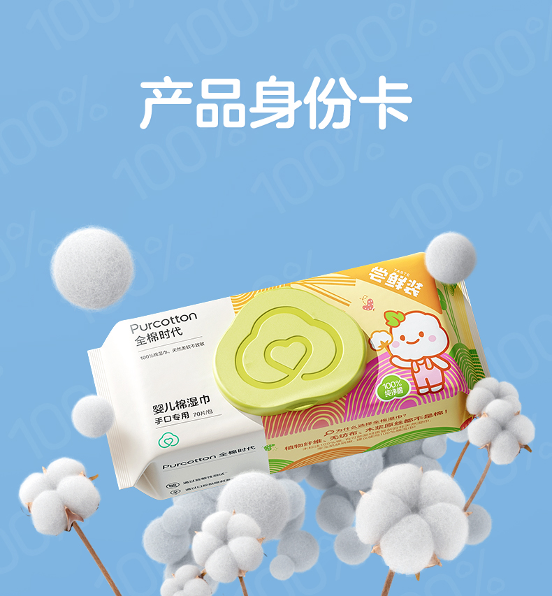 全棉时代棉湿巾手口专用 178mmx150mm 70片/包 3包 黄色