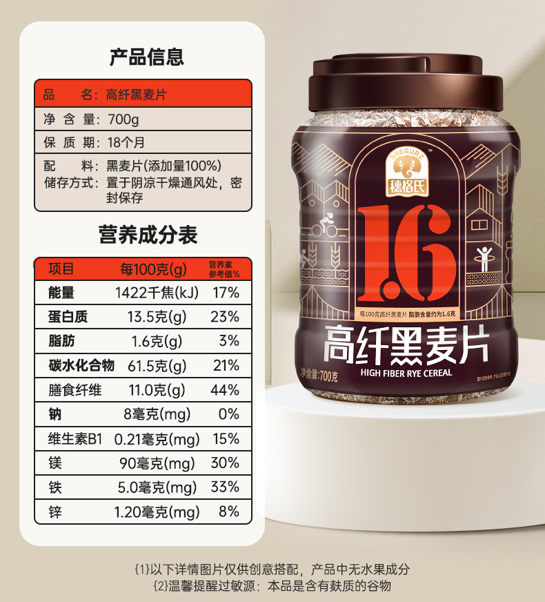 穗格氏高纤黑麦片 700g单位:罐 曜石黑