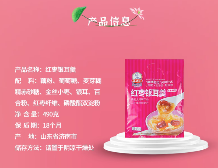 秦老太红枣银耳羹*2 490g*2 玫瑰红色