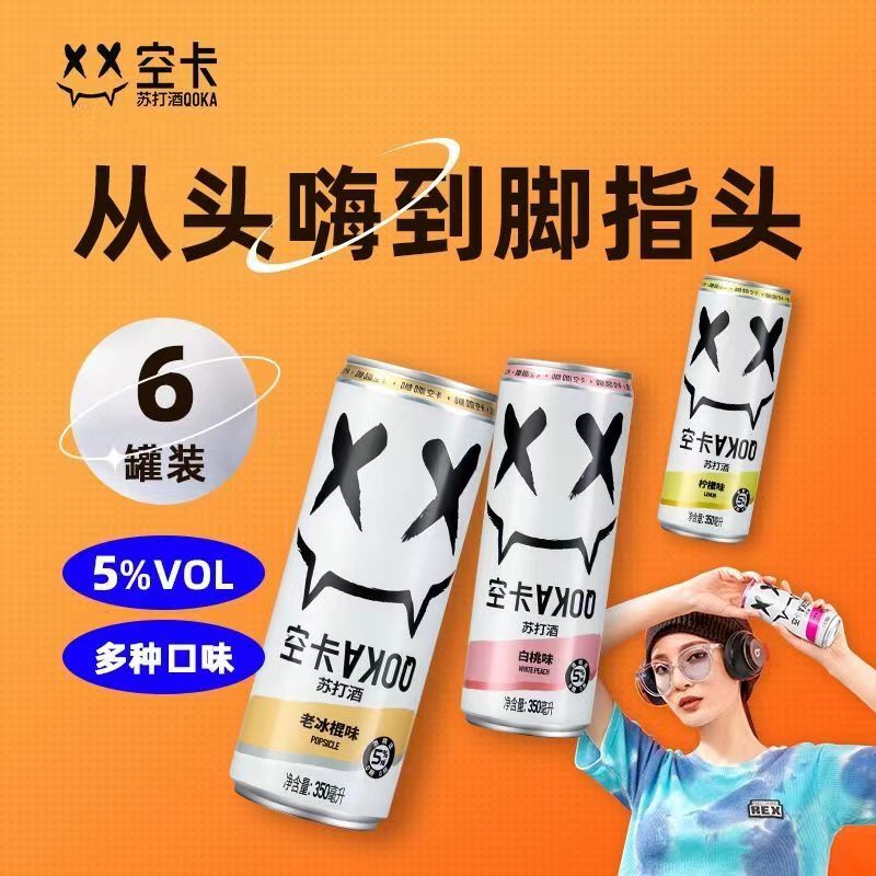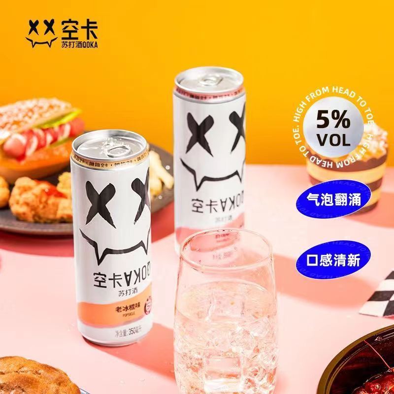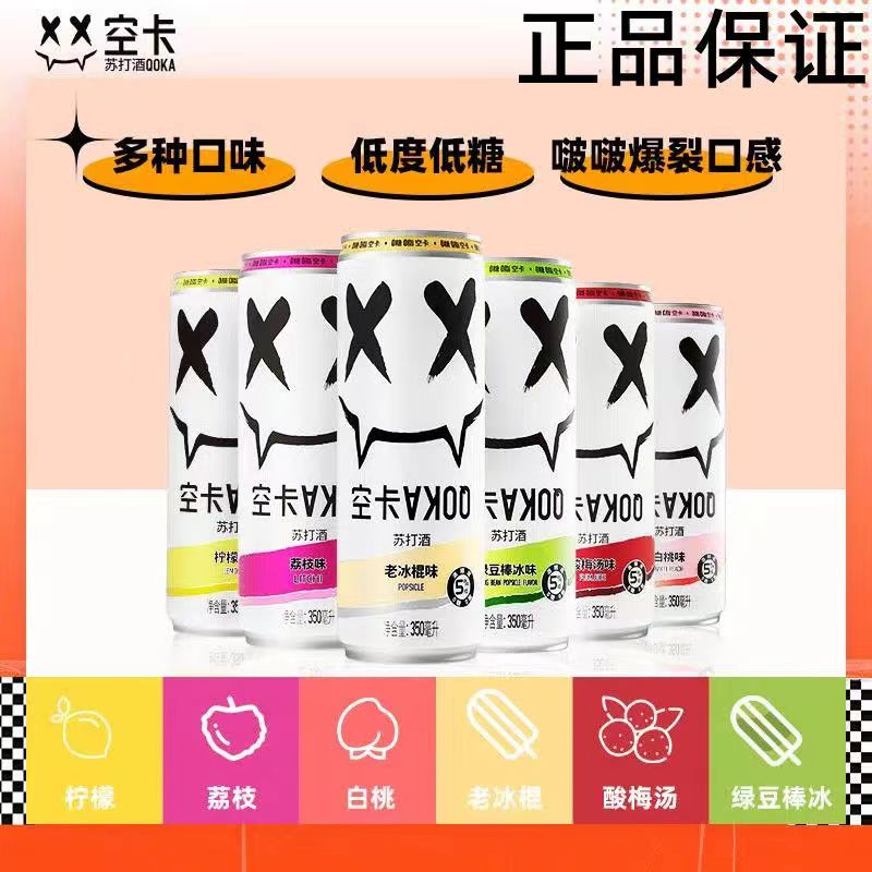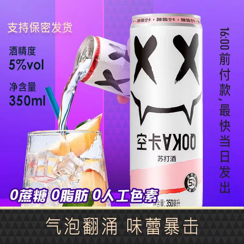 空卡QOKA白桃味苏打酒350ml*12/箱/瓶 茱萸粉