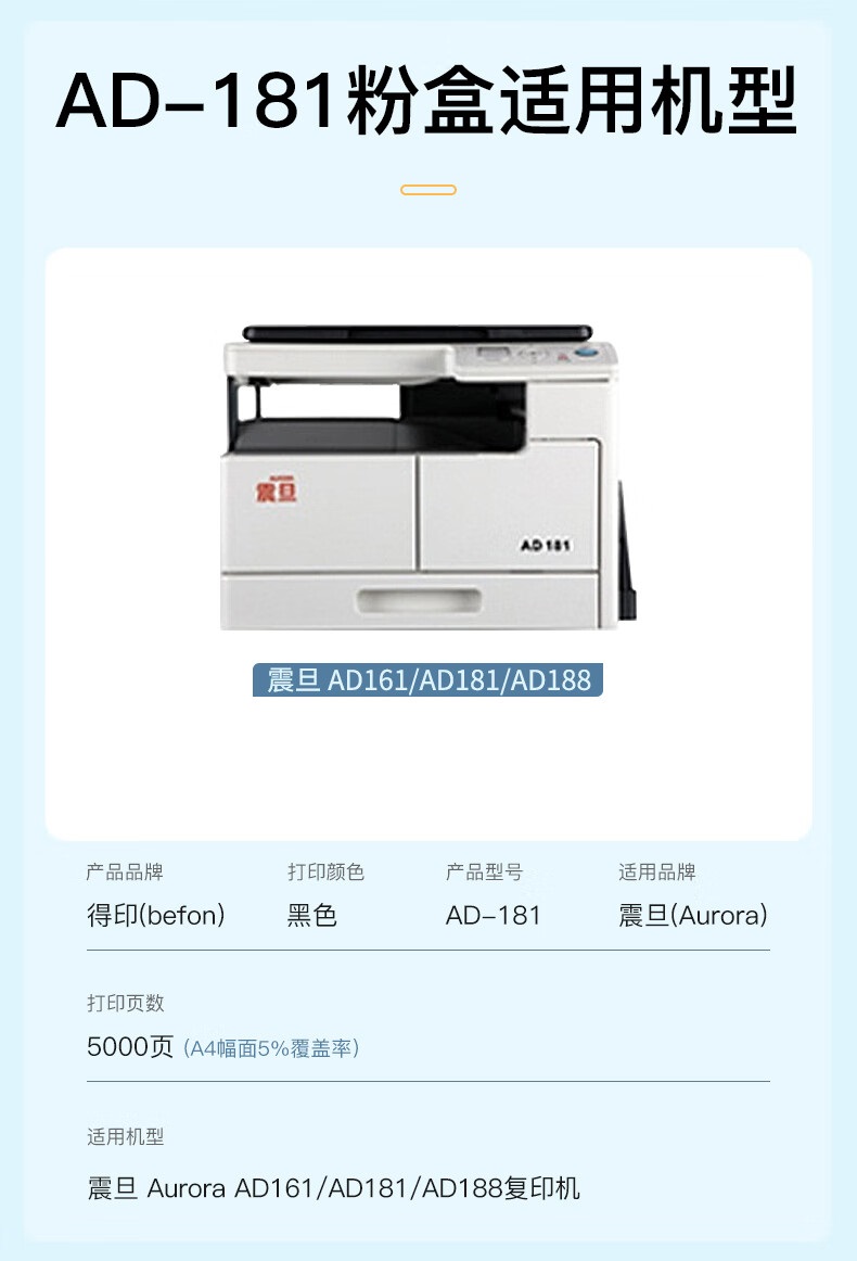 得印 AD-181黑色粉盒 震旦AD161/AD181/AD188 单位:支 黑色
