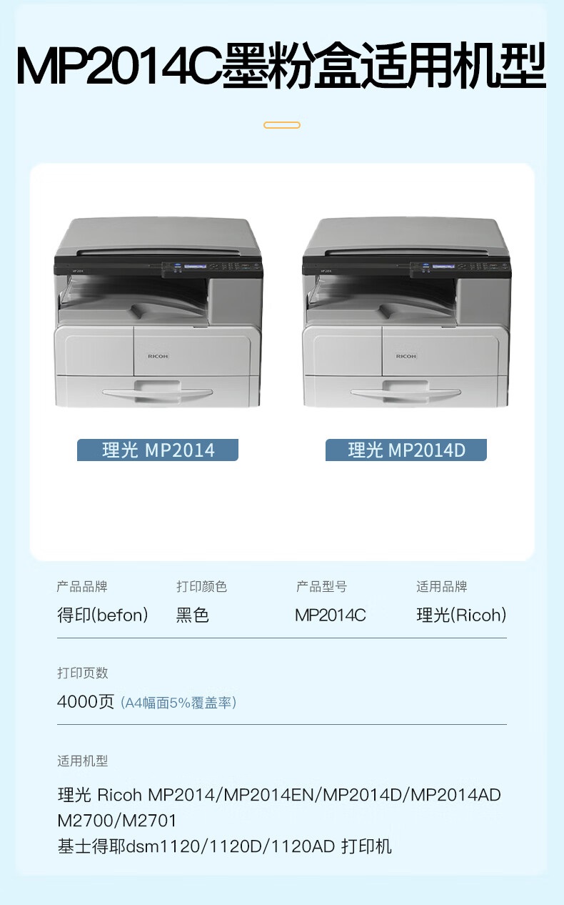 得印 MP2014C黑色粉盒 理光MP2014/MP2014EN/MP2014D 单位:支 黑色