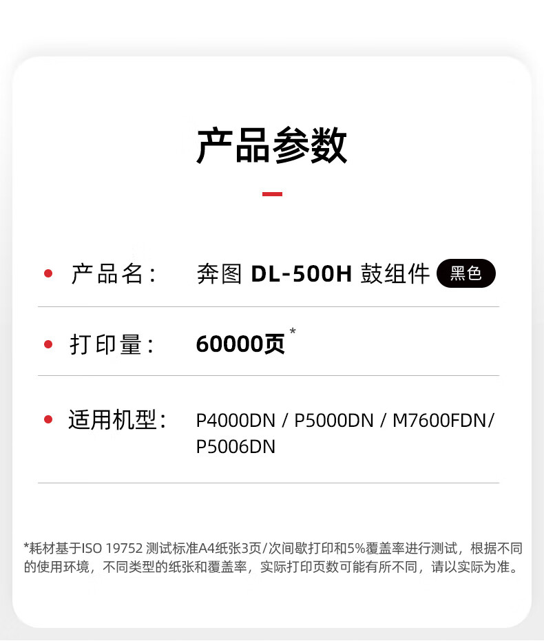 奔图DL-500H原装鼓组件适用P4000DN P5006DN M7600FDN粉盒硒鼓架 黑色(约60000页)