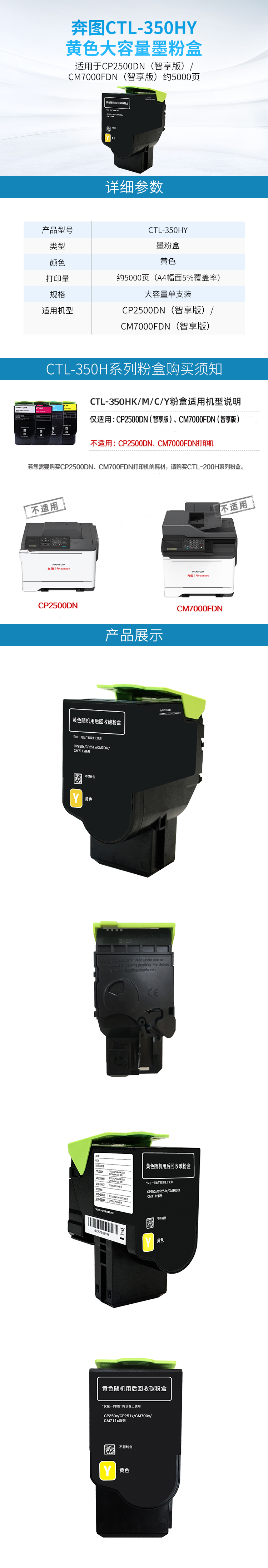 奔图CTL-350HY 墨粉盒大容量适用于CP2500DN(智享版)/CM7000FDN(智享版)个 黄色(约5000页)