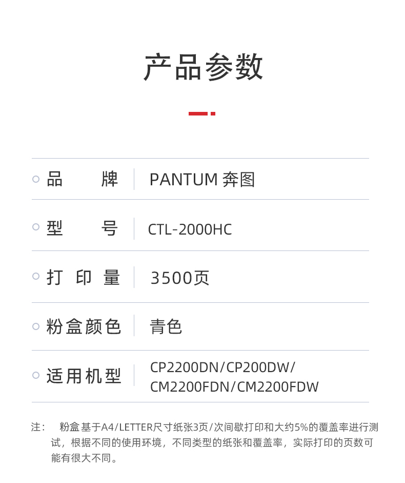 奔图CTL-2000HC原装青色粉盒 适用CP2200DW CM2200FDW CP2200DN 青色(约3500页)