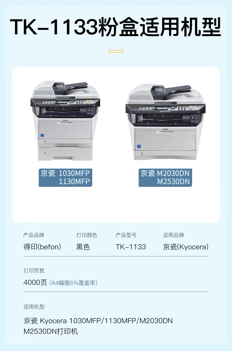 得印 TK-1133黑色粉盒 京瓷FS1130/1030/1131/1132/M2530dn单位:支 黑色