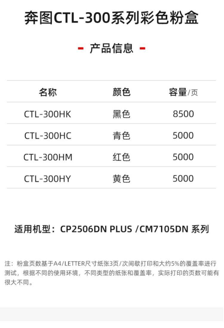 奔图CTL-300HK四色墨粉盒套装(共四只)(适用于CP2506DN PLUS/CM7105D)N 四色墨粉盒套装