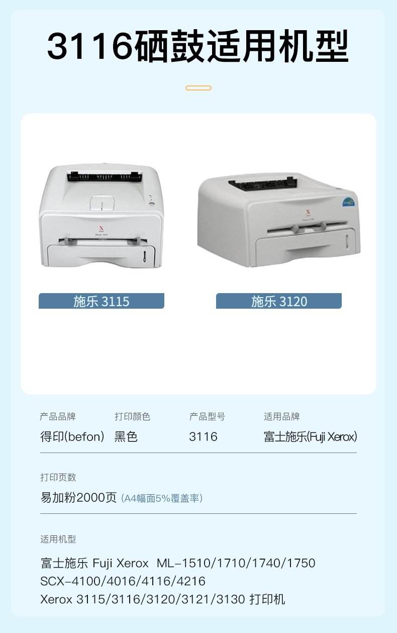 得印 3116 黑色硒鼓 施乐3115/3121/3130/3120 单位:支 黑色