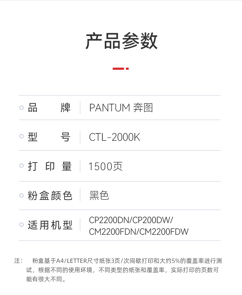 奔图CTL-2000K原装黑色粉盒 适用CP2200DW CM2200FDW CP2200DN 黑色(1500页)