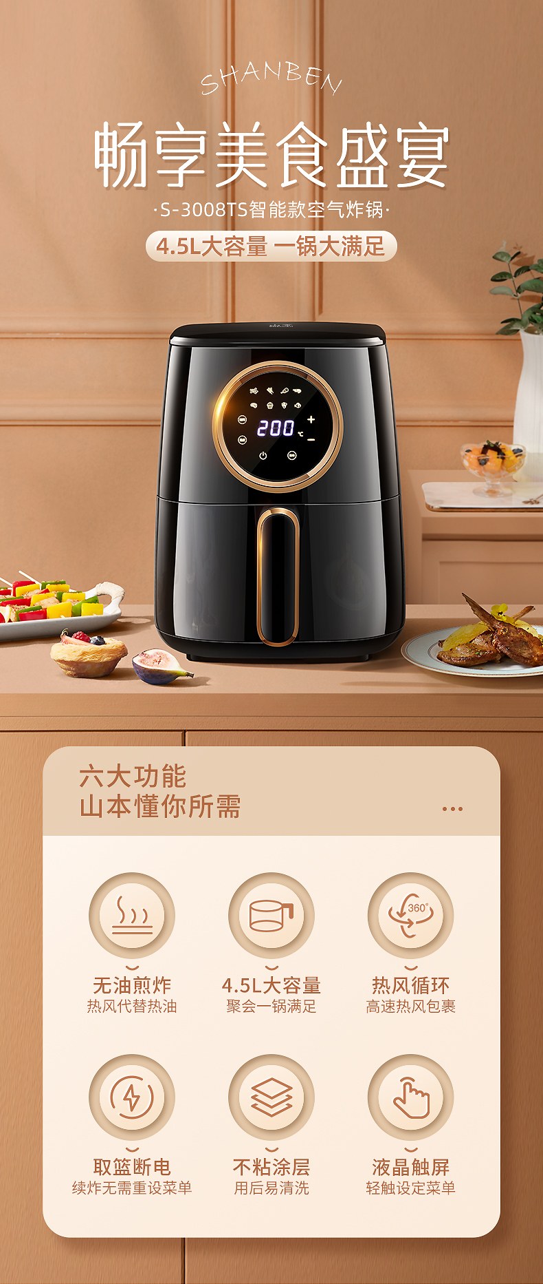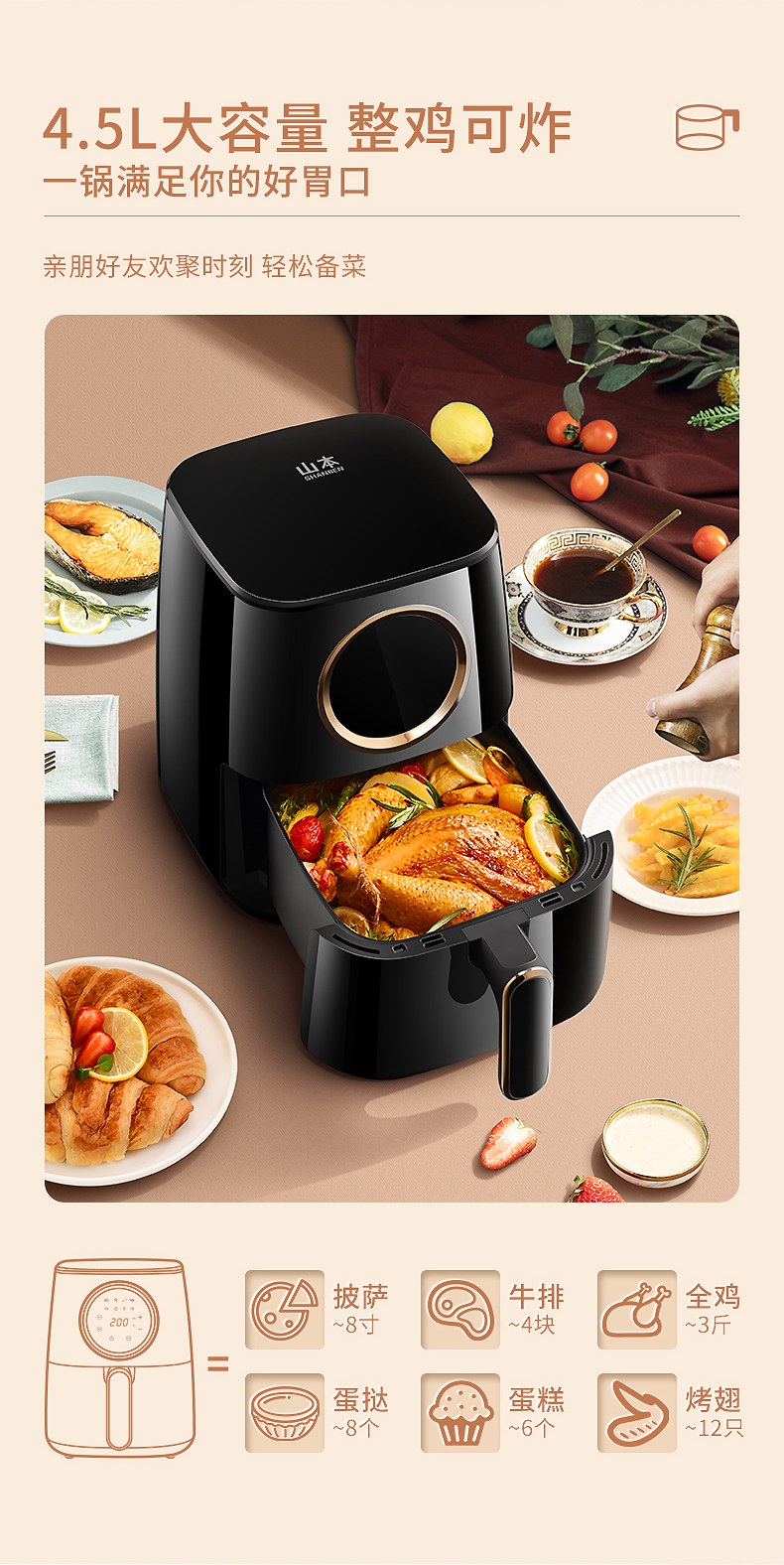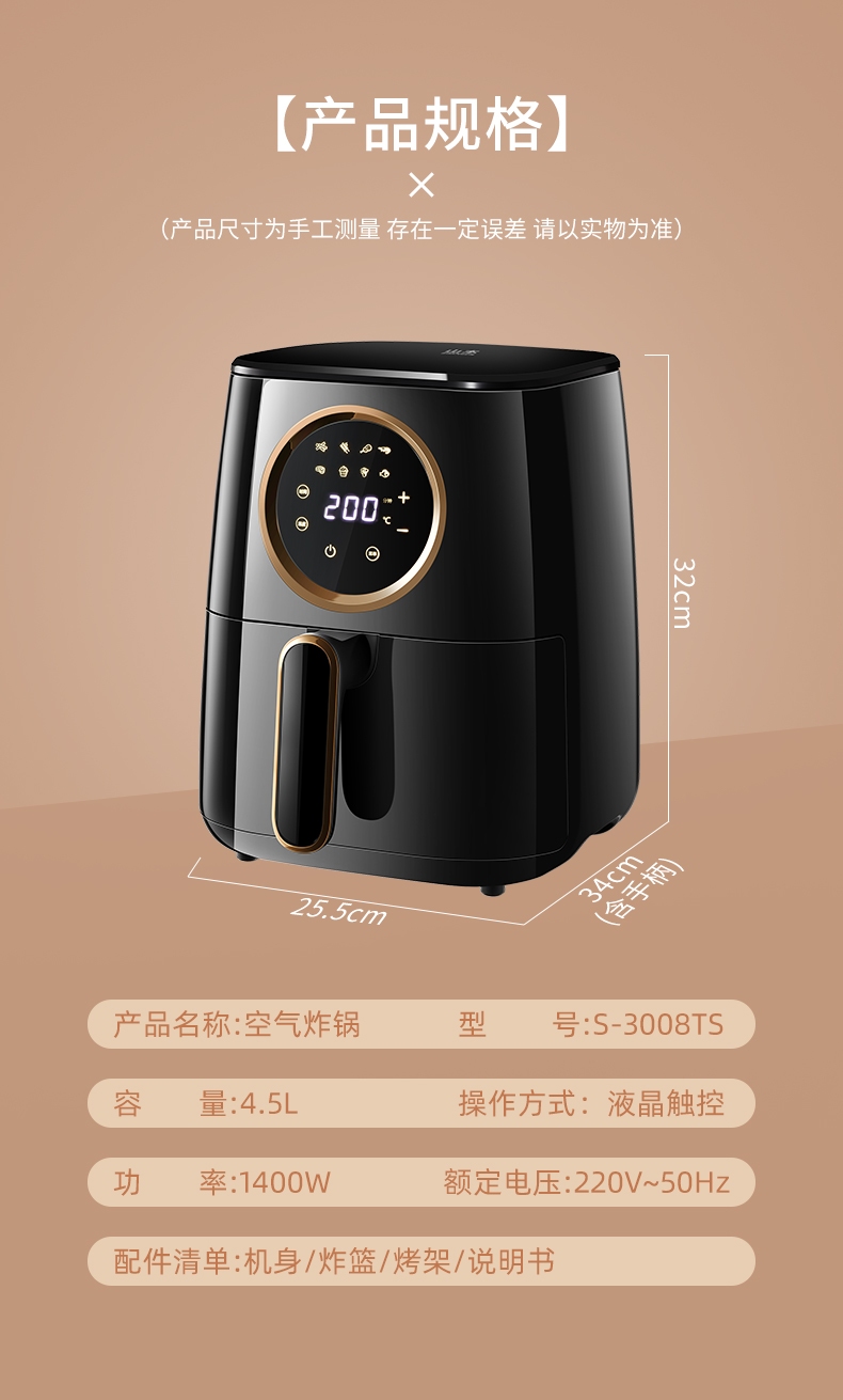 山本 空气炸锅 S-3008TS(单位:台) 黑色