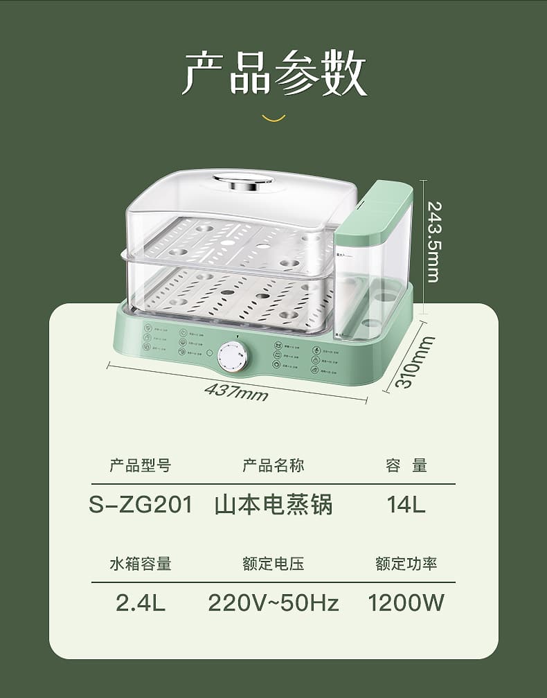 山本 电蒸锅 S-ZG201(单位:台) 绿色