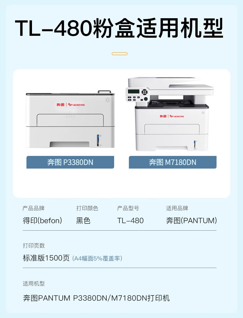 得印 TL-480黑色粉盒 适用奔图PANTUM P3380DN M7180DN 单位:支 黑色