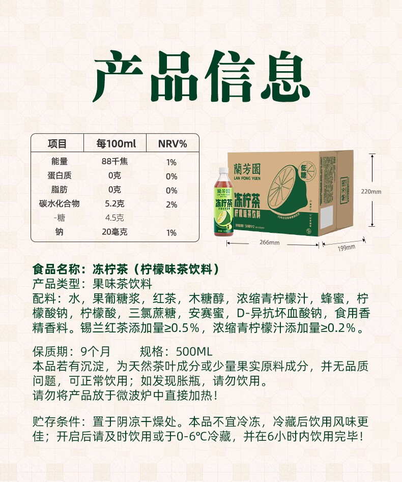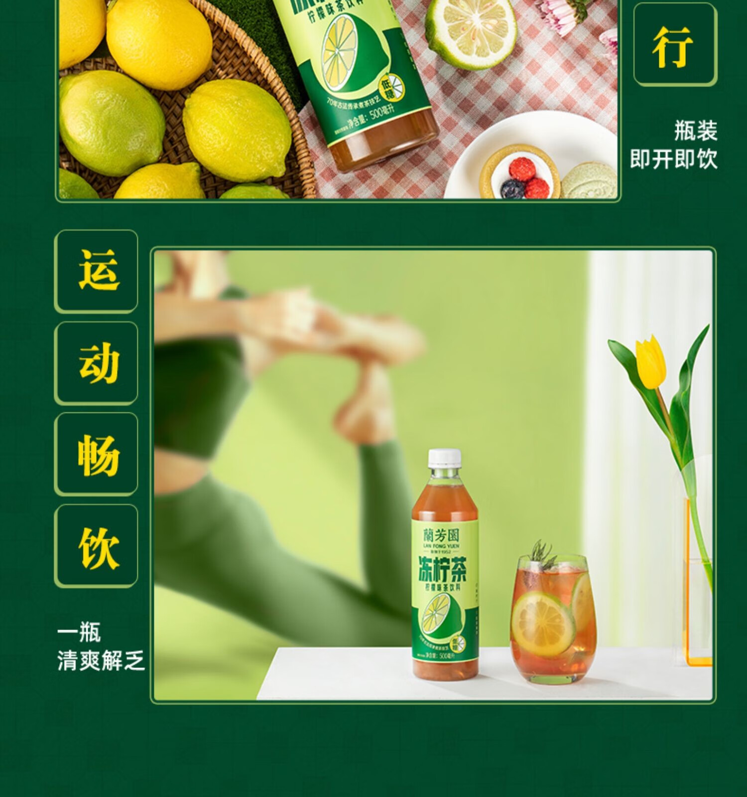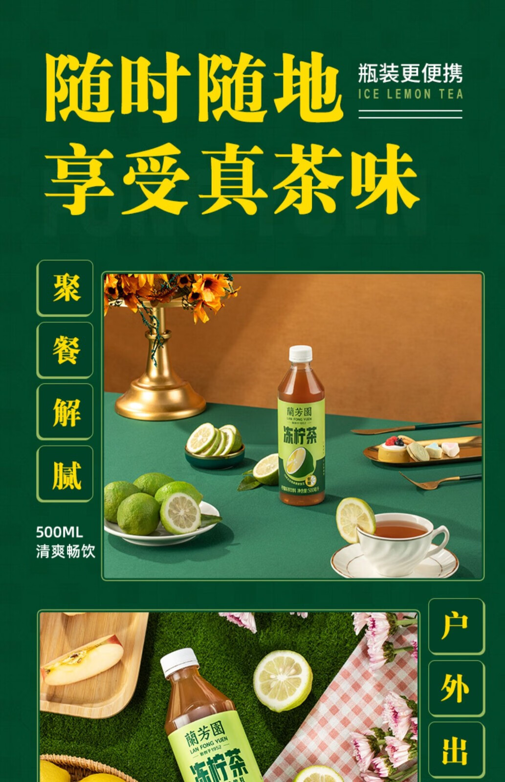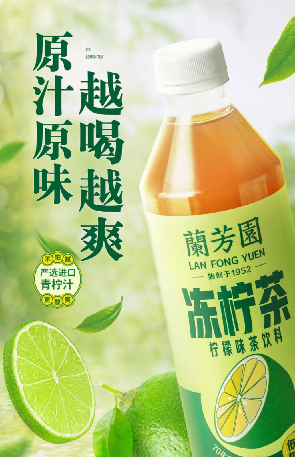 香飘飘-兰芳园原味冻柠茶瓶装500ml*15瓶 松石绿