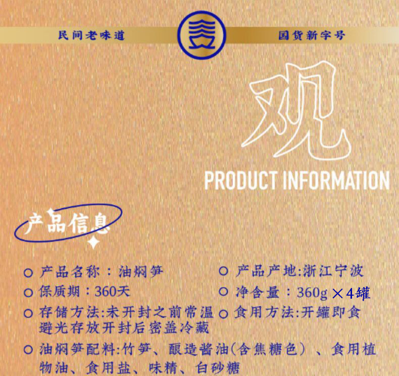 三关六码头奉化油焖笋罐头360g*4(单位:组)