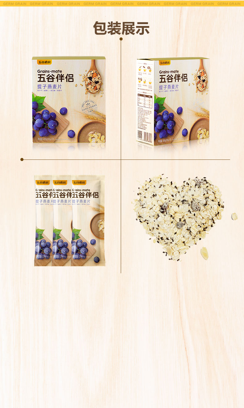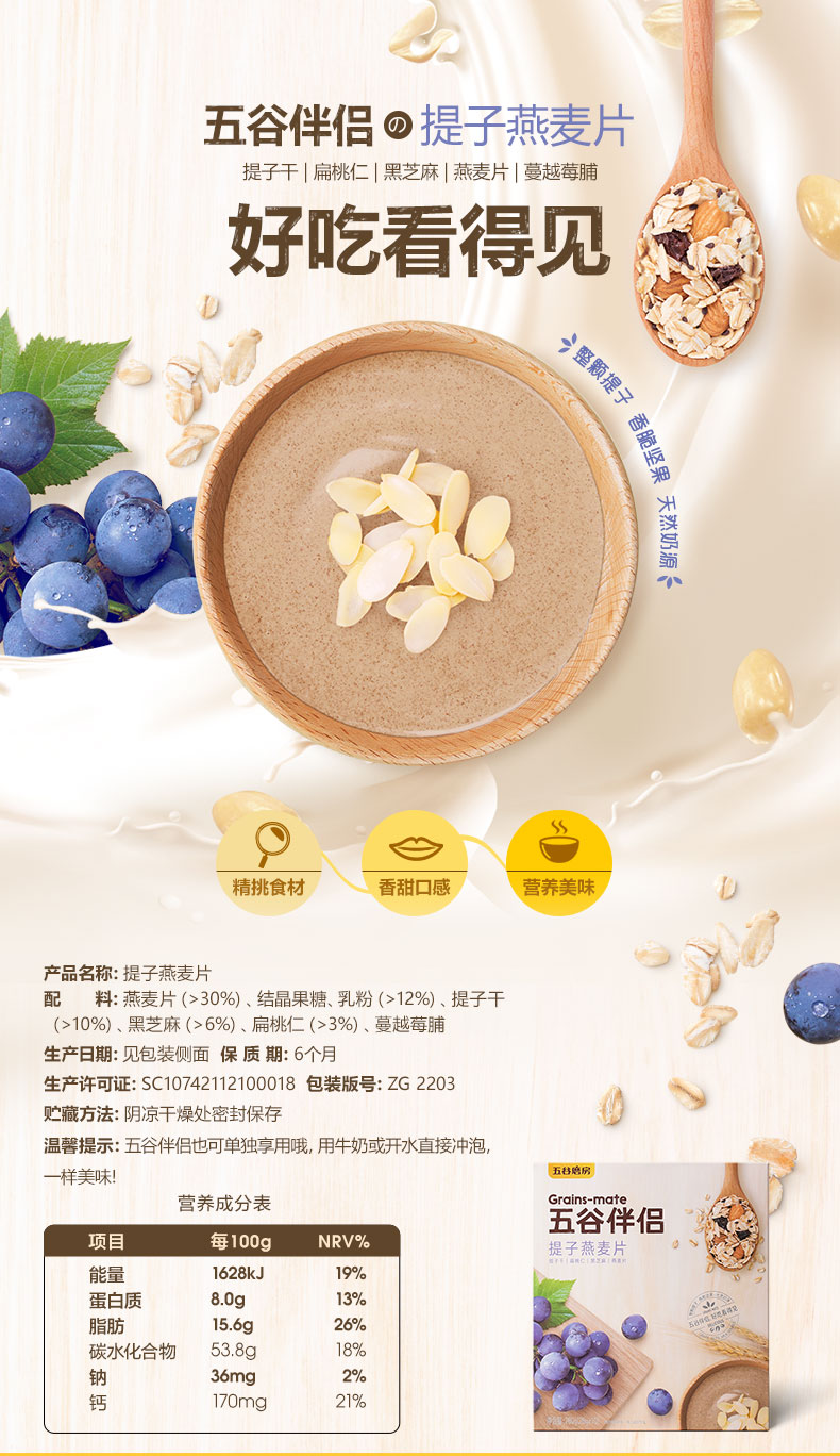 五谷磨房五谷伴侣提子燕麦片280g*2盒 自然色