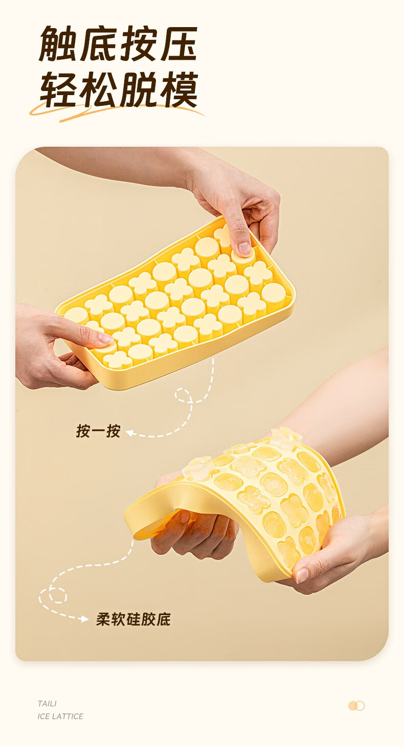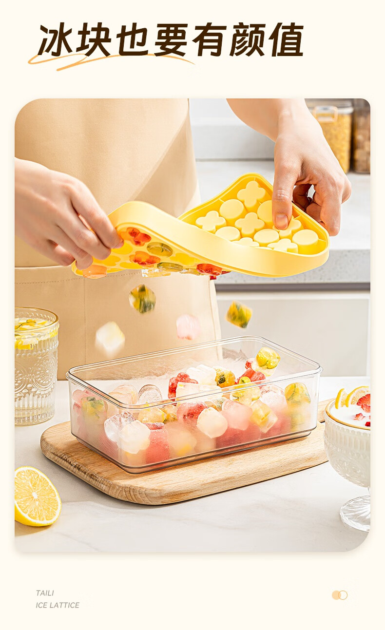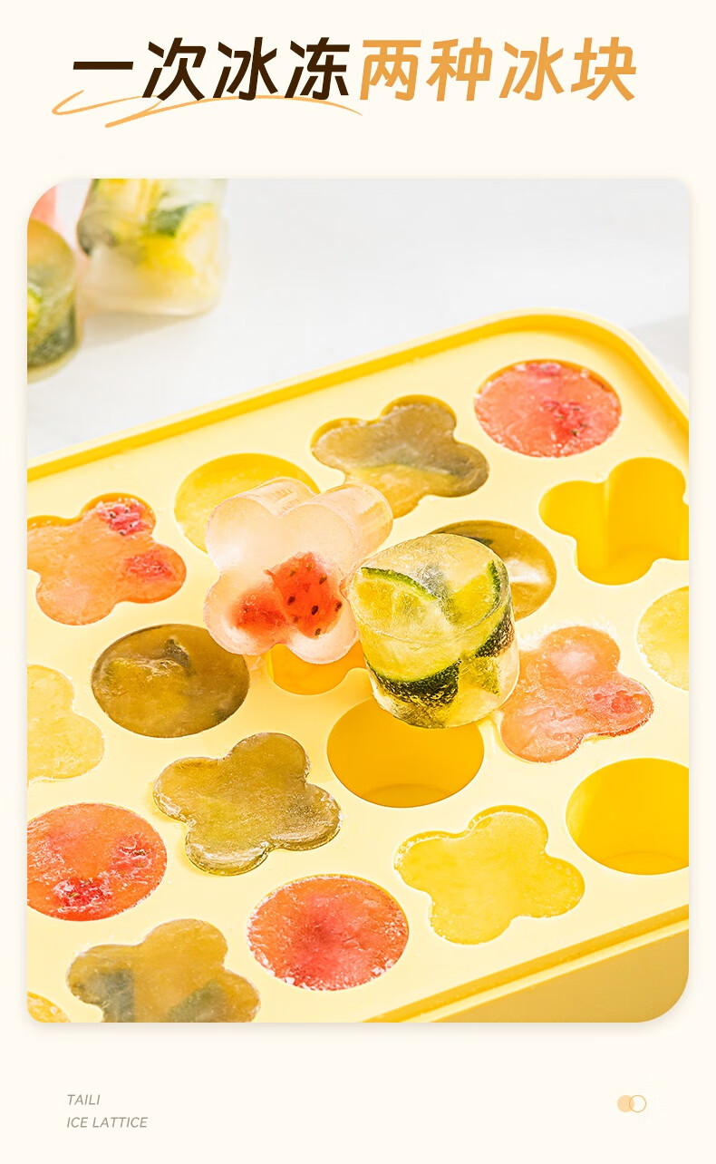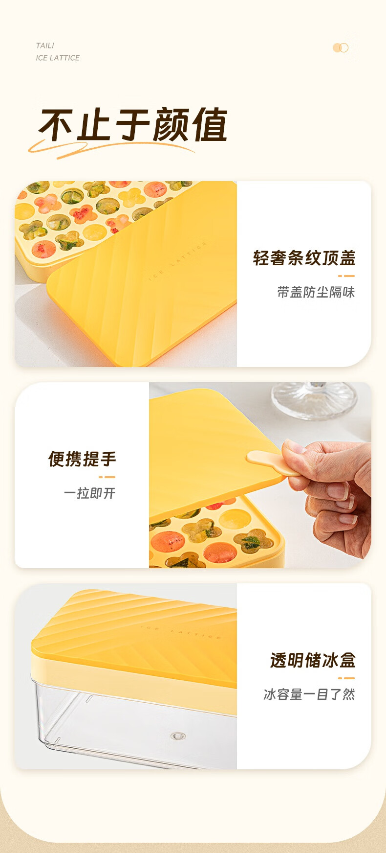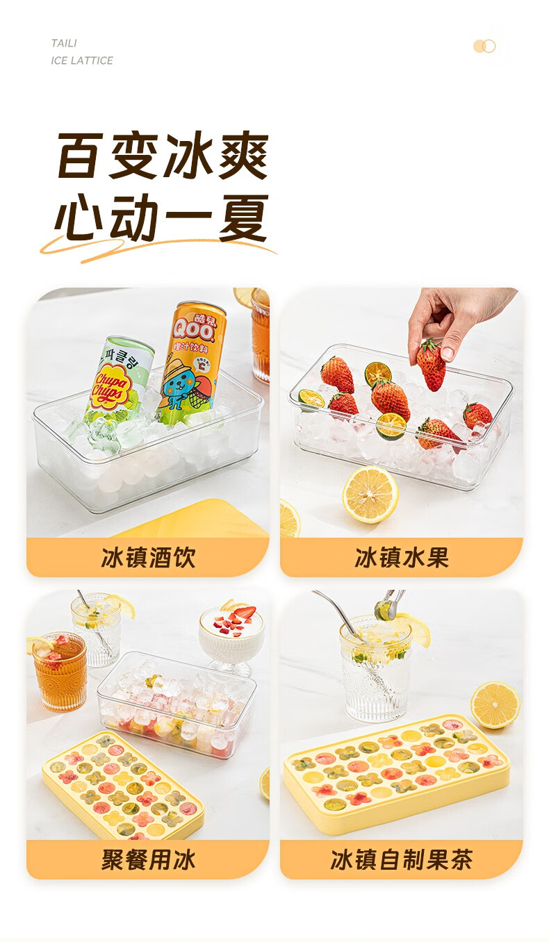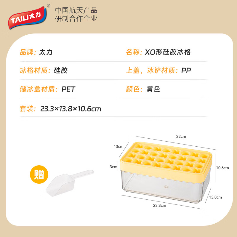 太力 冰块模具 制冰模具XO硅胶冰格制冰盒冰块辅食工具雪糕模具套装 AT961(单位:套) 黄色