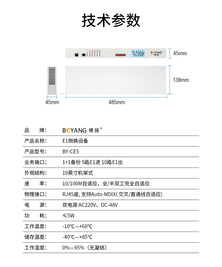 博扬 2M自动切换信道倒换设备 1+1备份 5路E1进 10路E1出 E1倒换设备 机架式 1对价 白色
