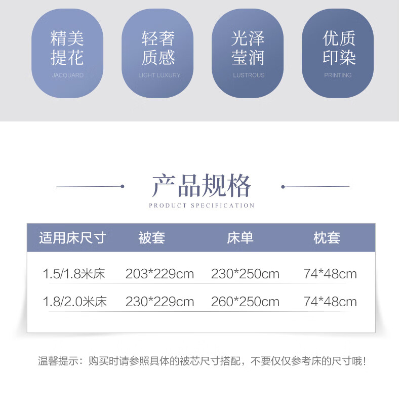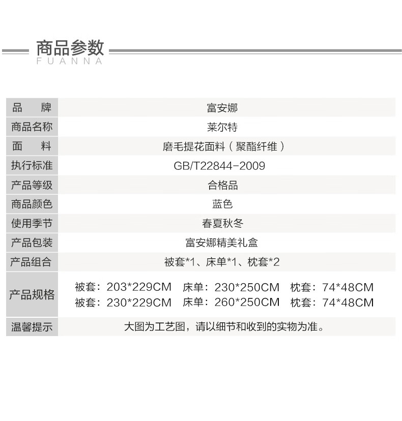 富安娜 素提四件套-莱尔特203*229cm 蓝色