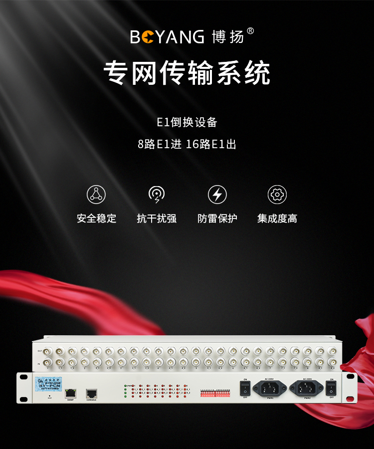 博扬 2M自动切换信道倒换设备 1+1备份 8路E1进 16路E1出 E1倒换设备 机架式 1对价 白色