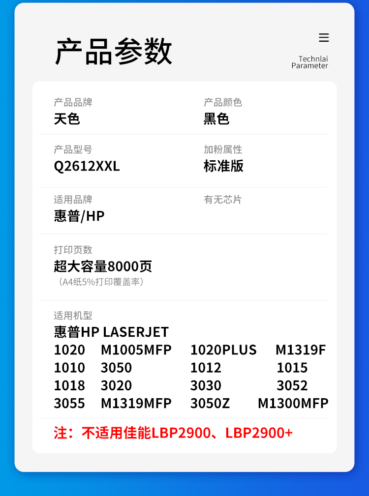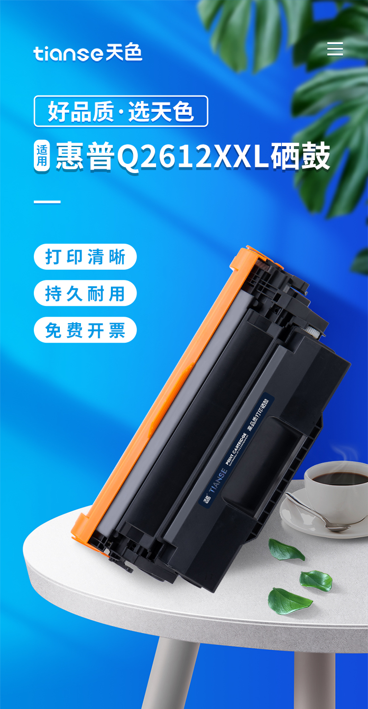 天色适用惠普m1005硒鼓hp1020晒鼓12a易加粉1020plus碳粉1010 黑色