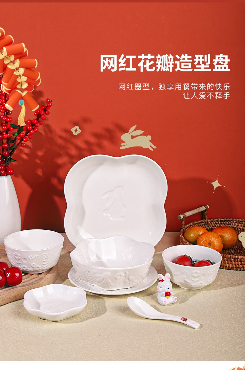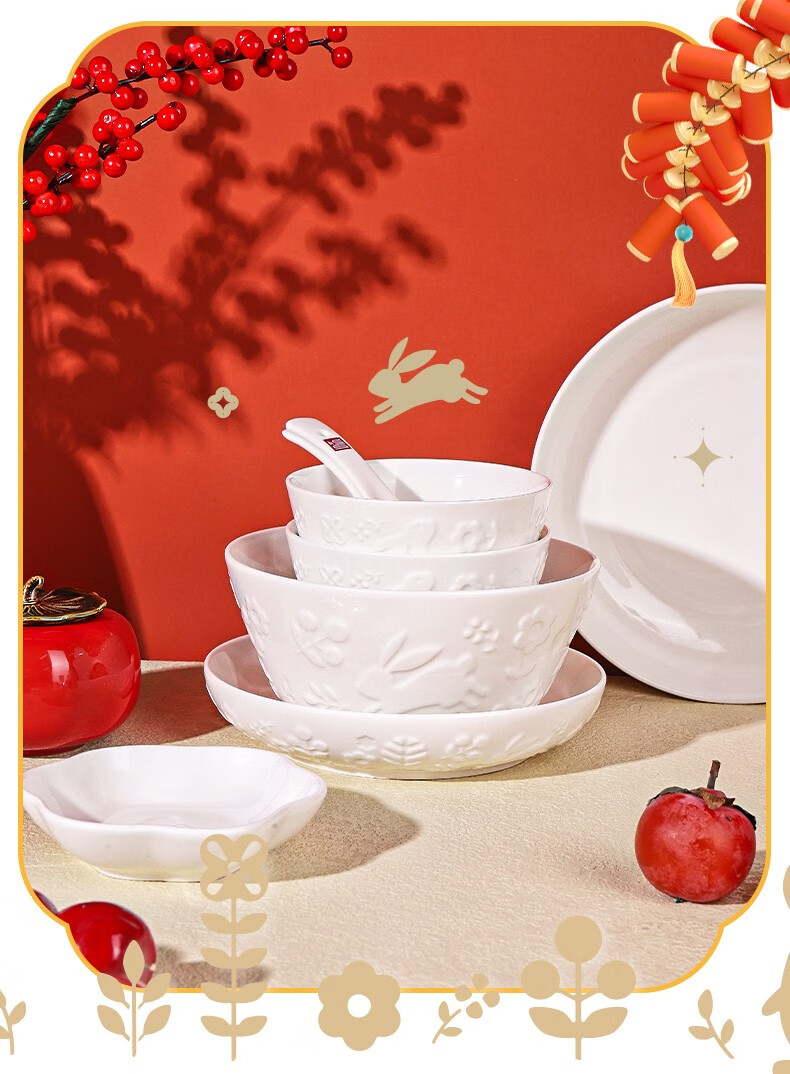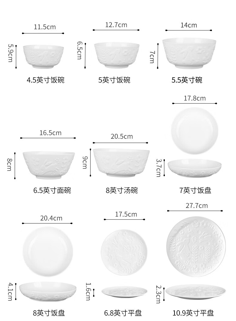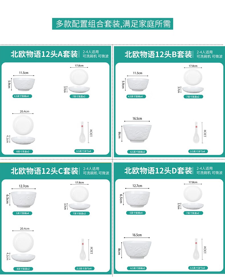 顺祥陶瓷北欧物语18头套装餐具礼盒装 白色