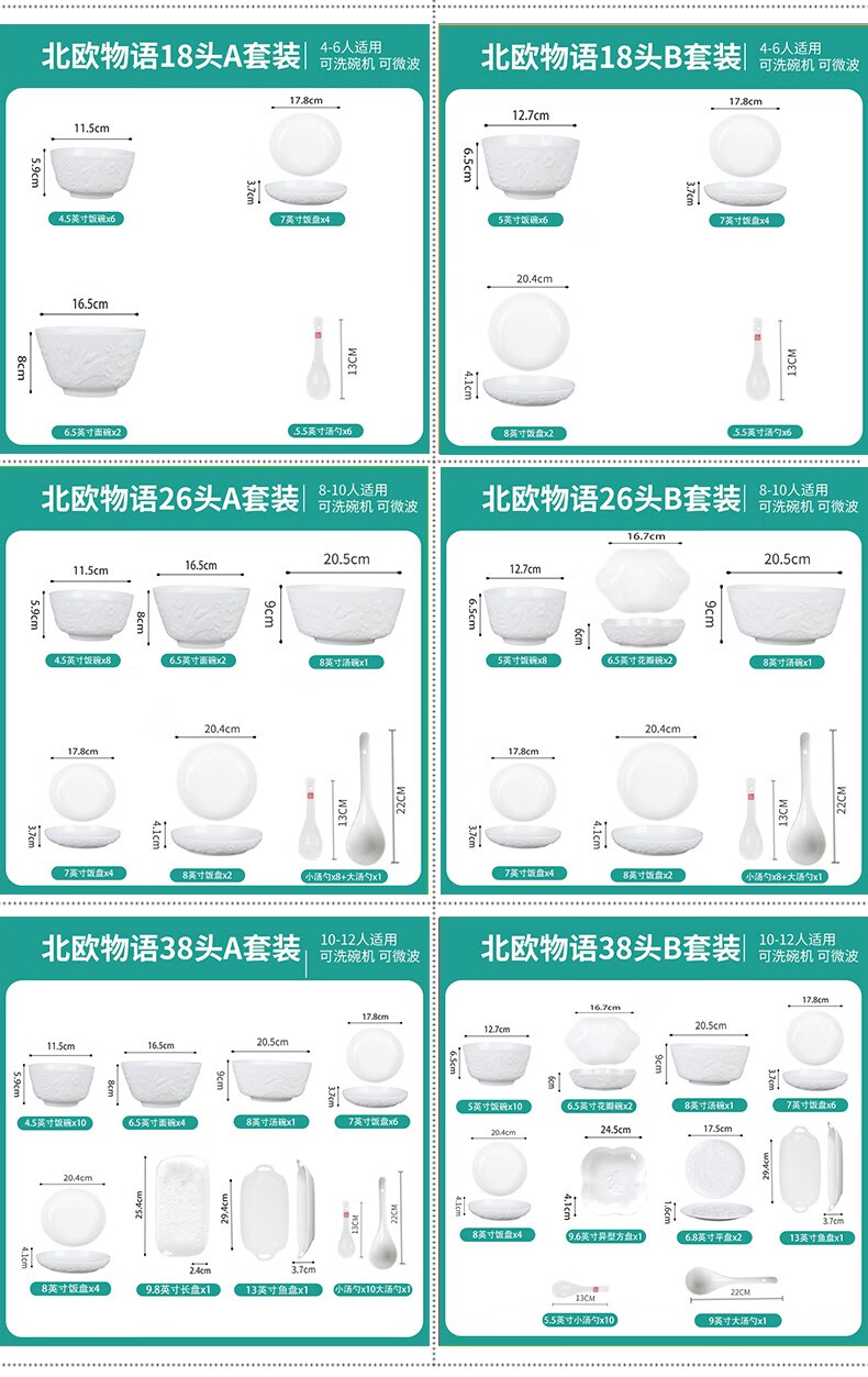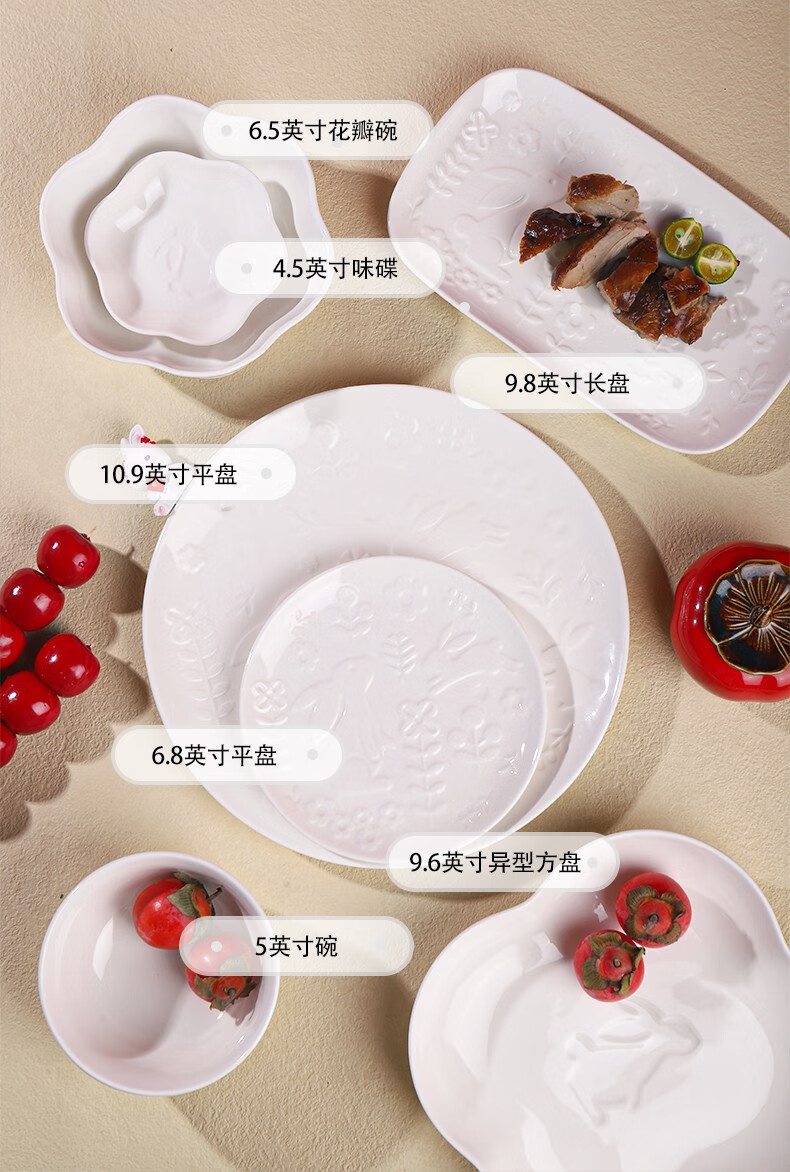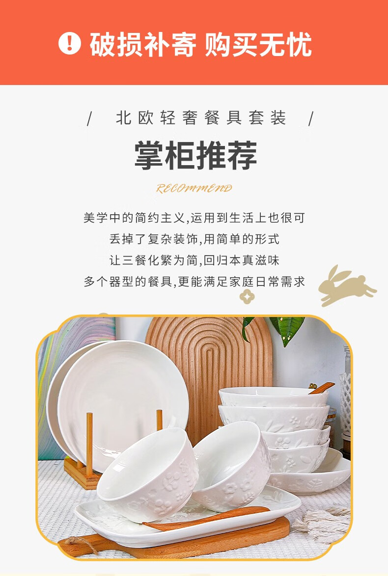 顺祥陶瓷北欧物语26头套装餐具礼盒装 白色