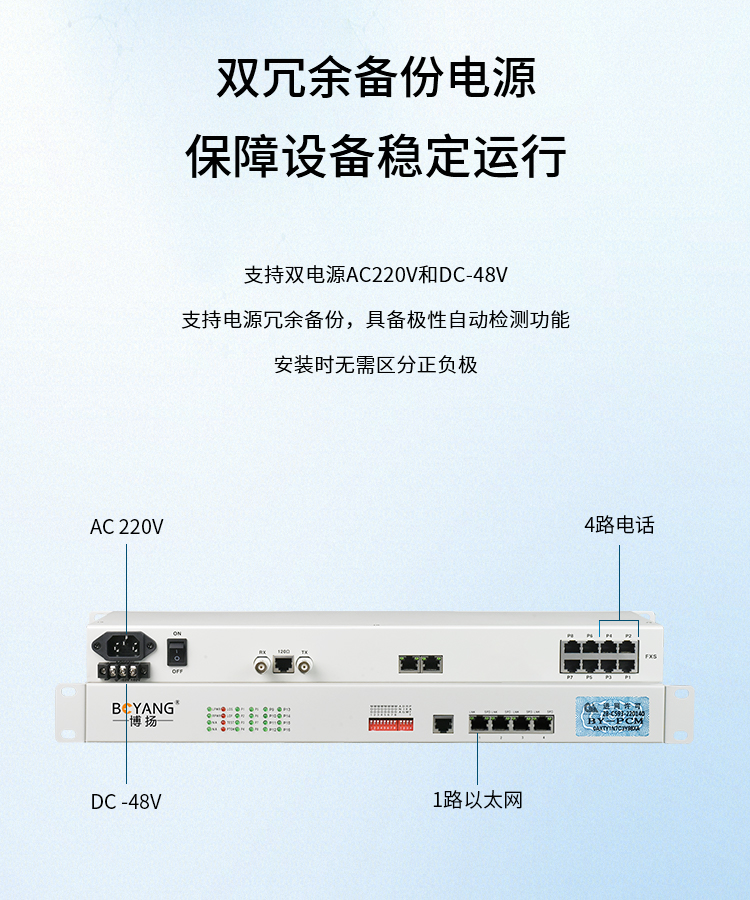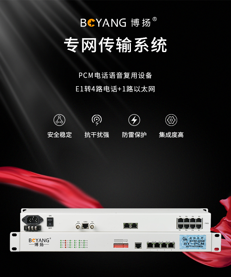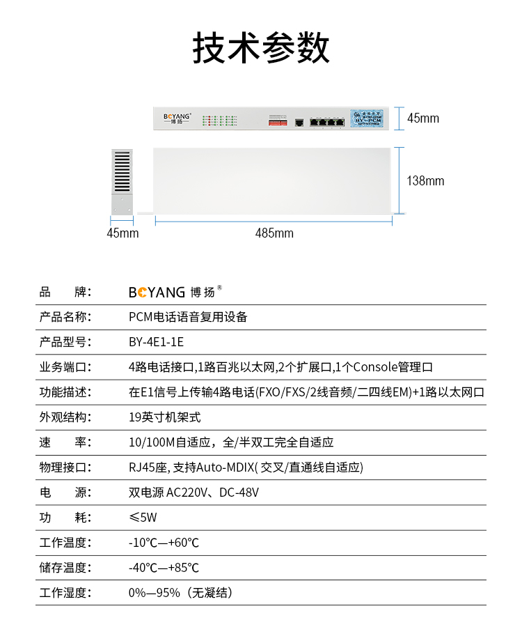 博扬(BOYANG)BY-4E1-1E PCM电话语音复用设备光端机 E1转4路电话+1路以太网 白色