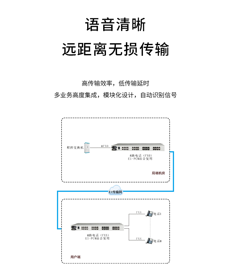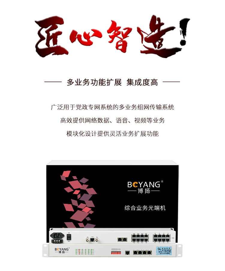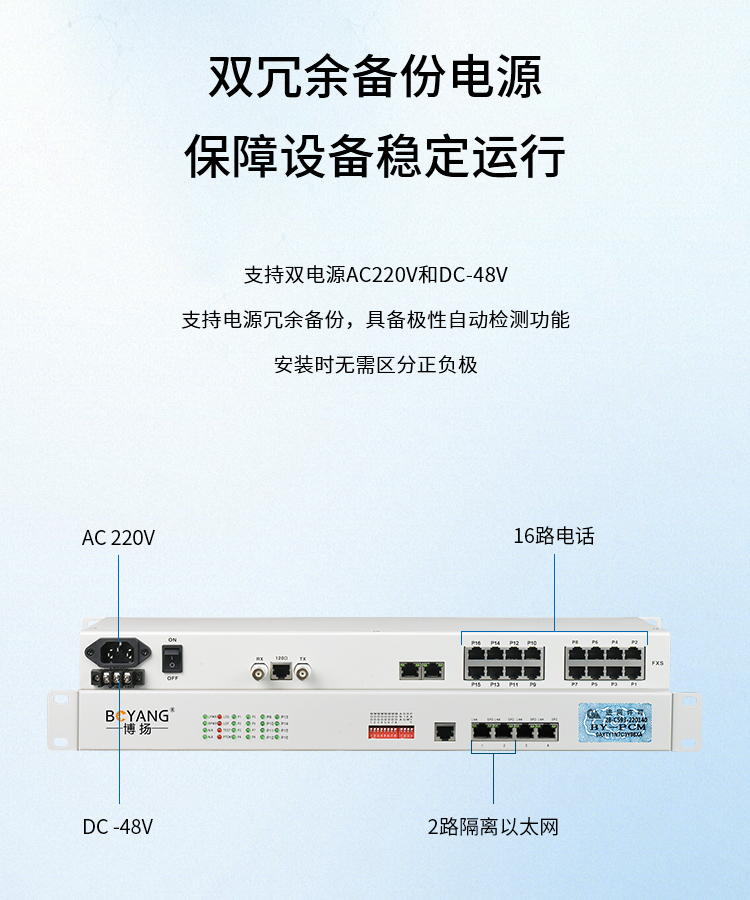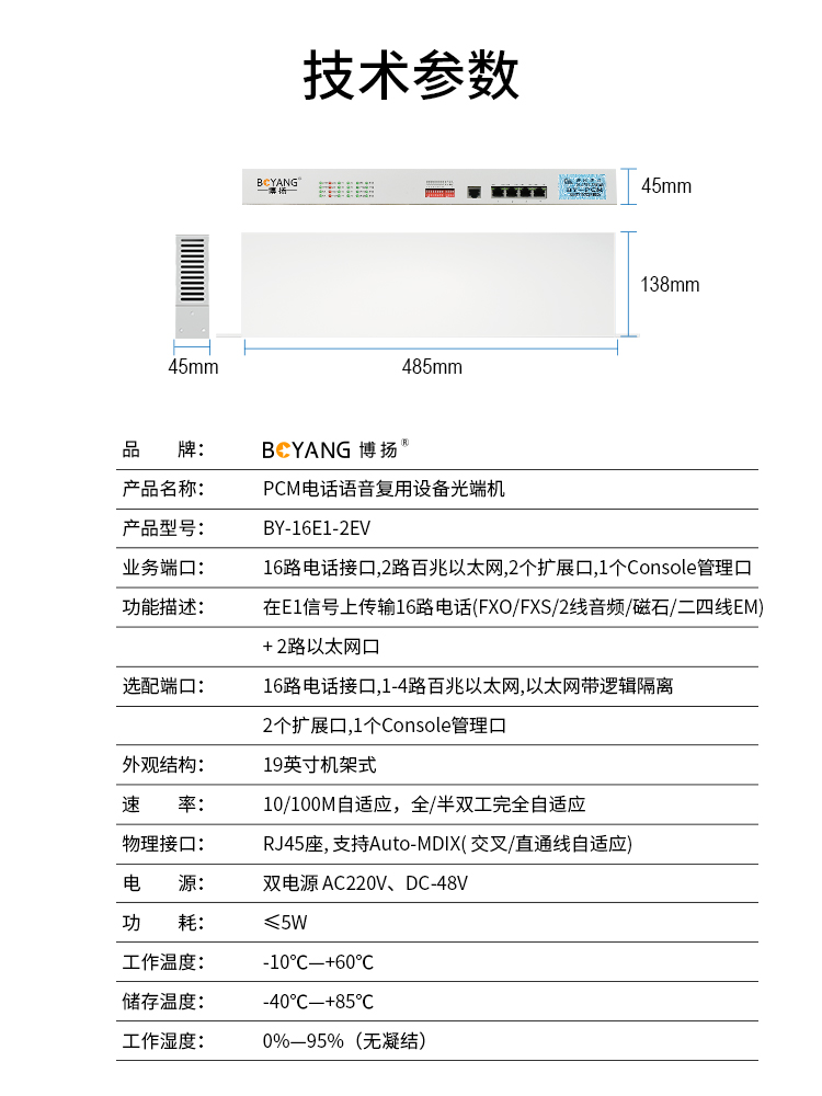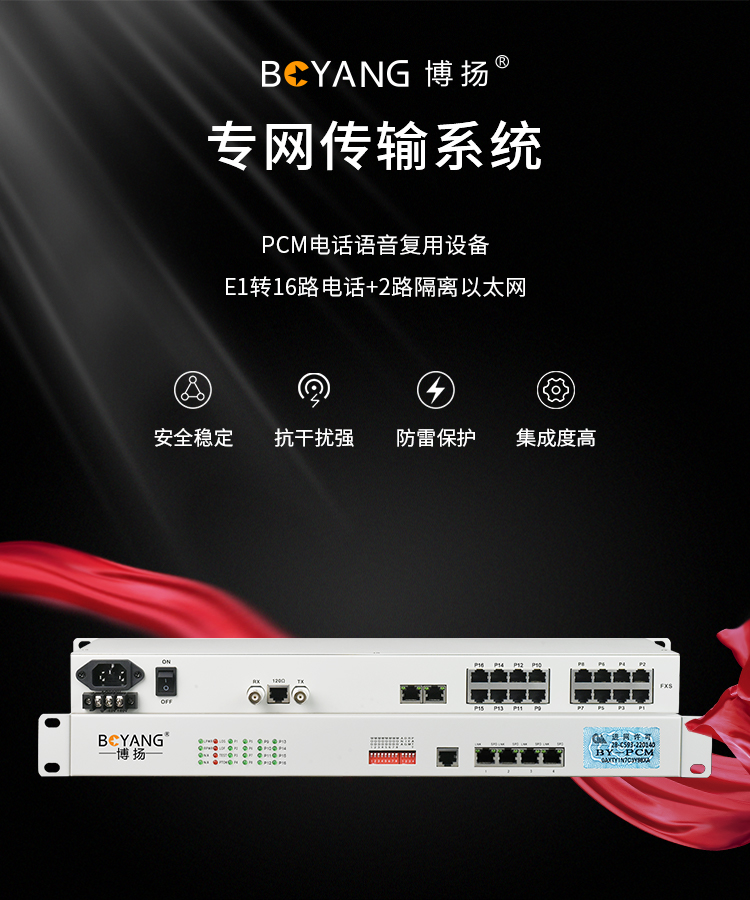 博扬(BOYANG)PCM电话语音复用设备 E1转16路电话+2路隔离以太网 机架式 一对价 白色
