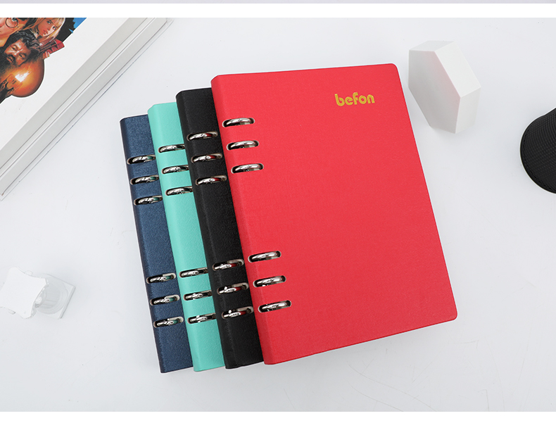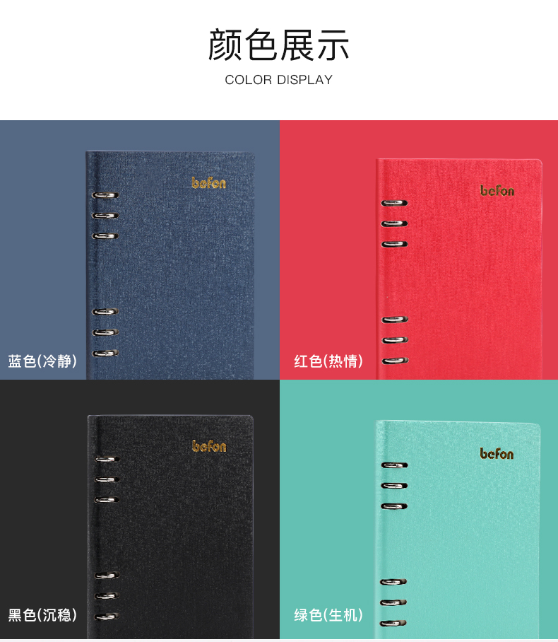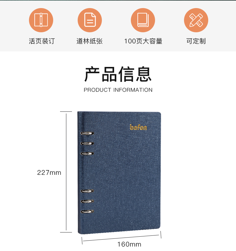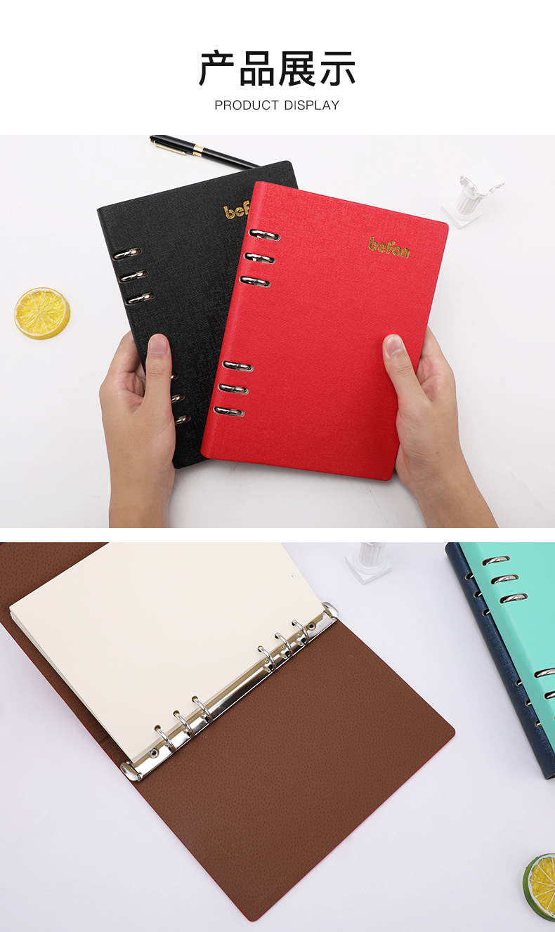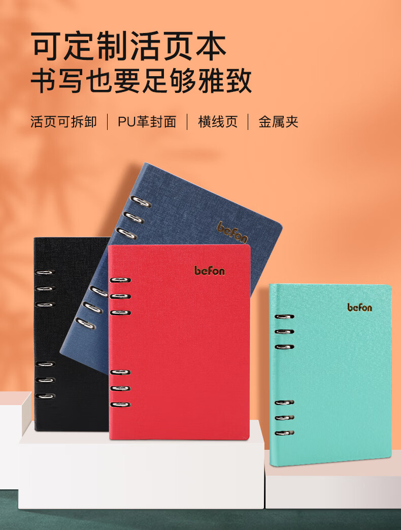 得印(befon) A5办公笔记本子文具100张可拆卸商务会议记录PU学习记事本子硬皮活页横条日记本 蓝色