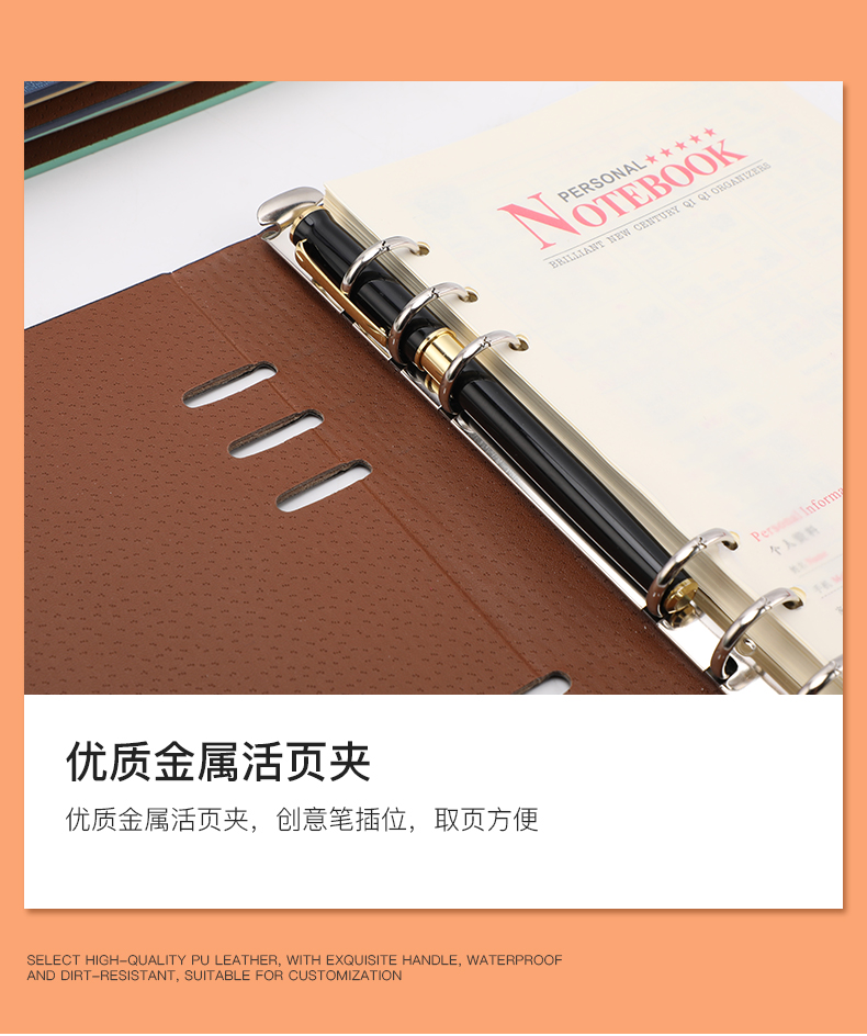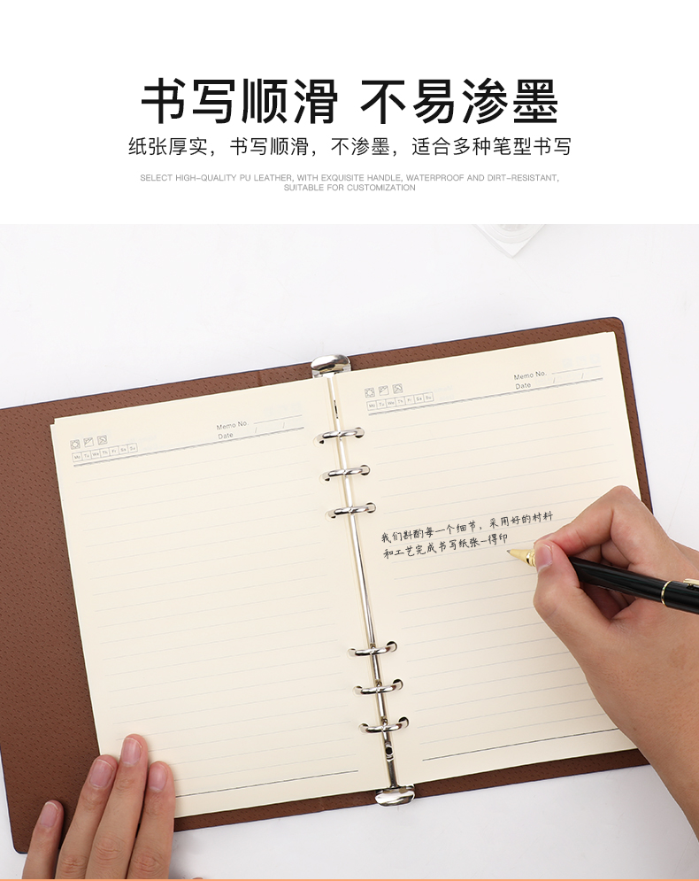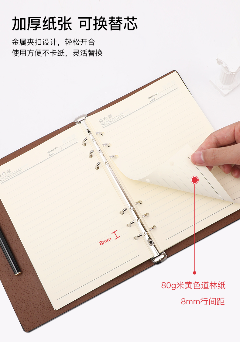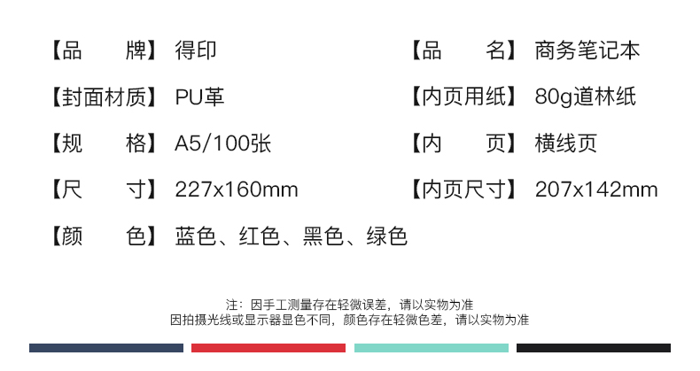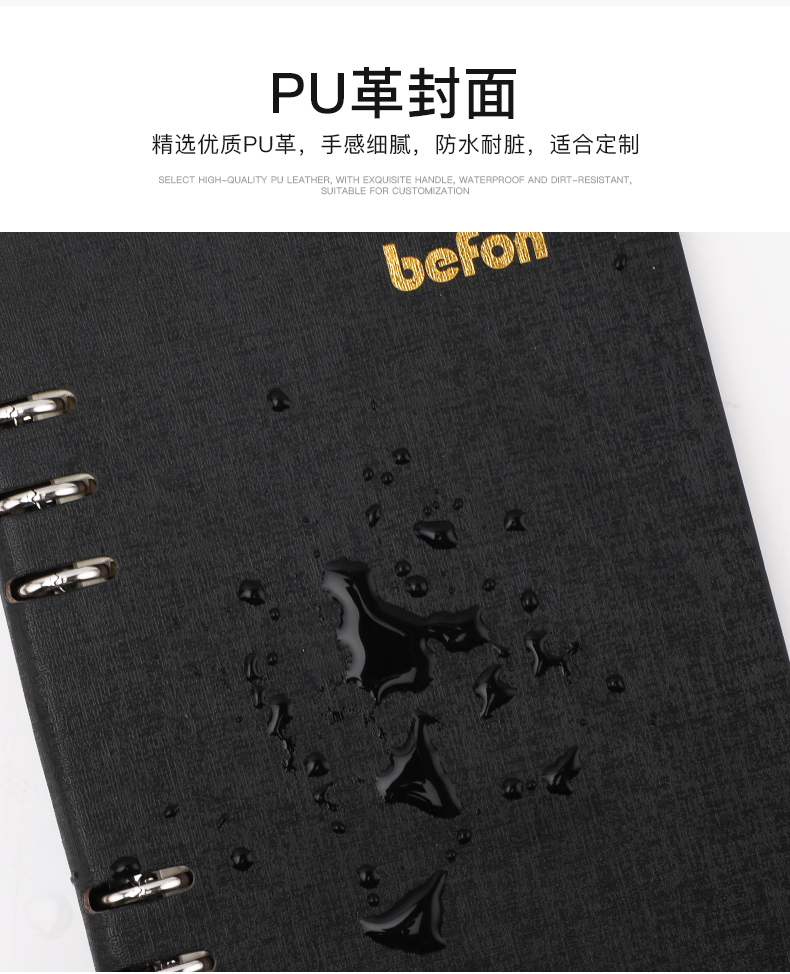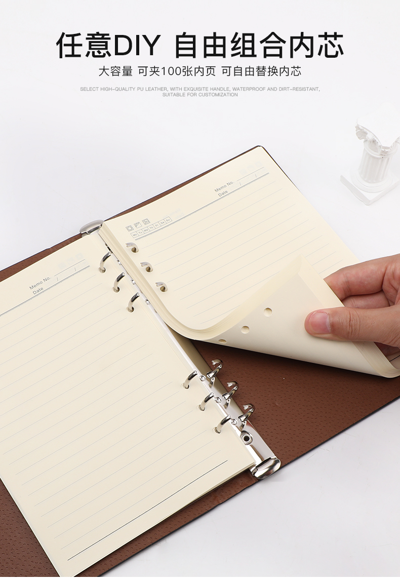 得印(befon) A5办公笔记本子文具100张可拆卸商务会议记录PU学习记事本子硬皮活页横条日记本 蓝色