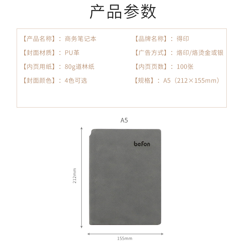 得印(befon) A5办公笔记本子文具 高档商务工作学习记事本子可插笔软皮笔记本 单位:本 A5深灰色