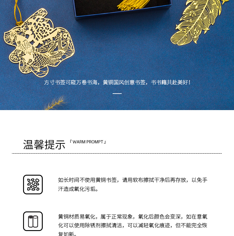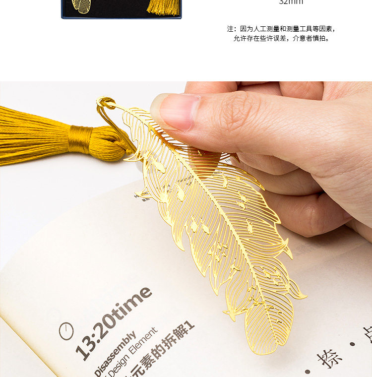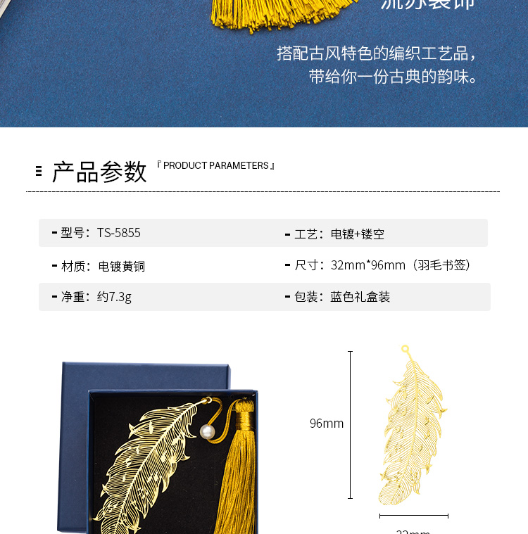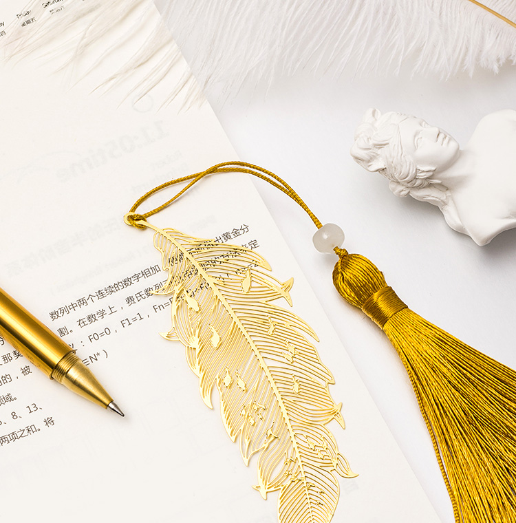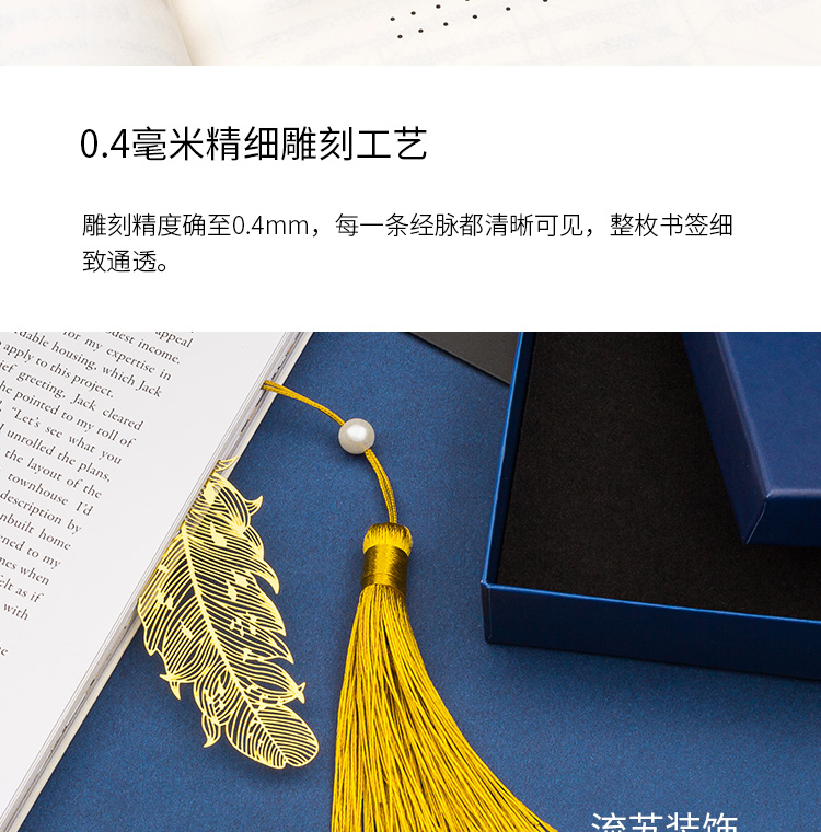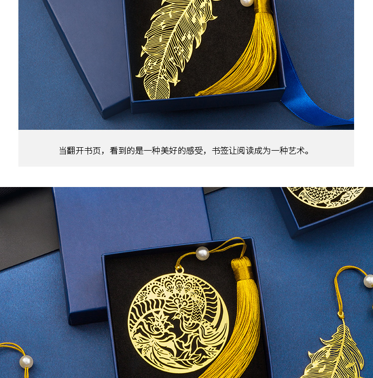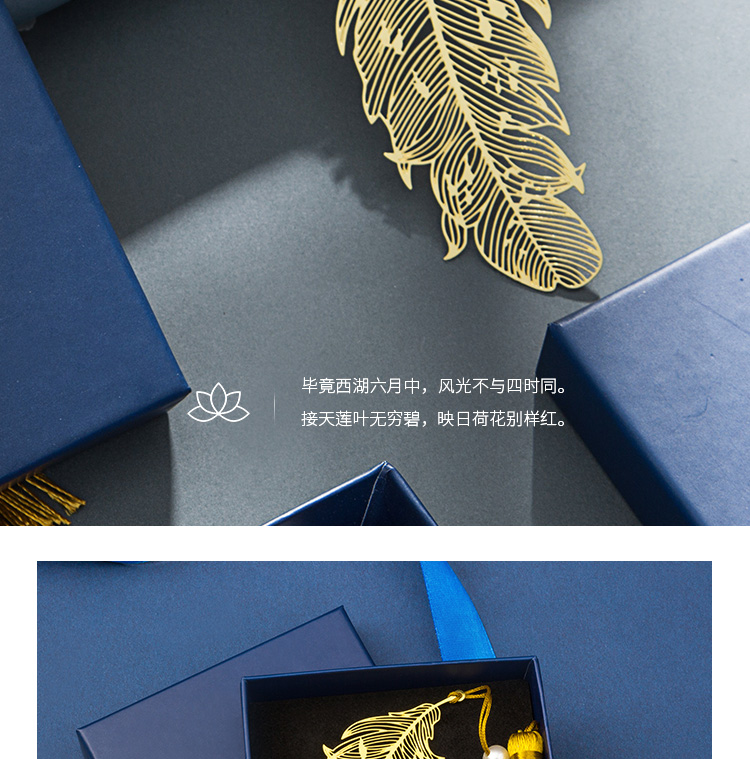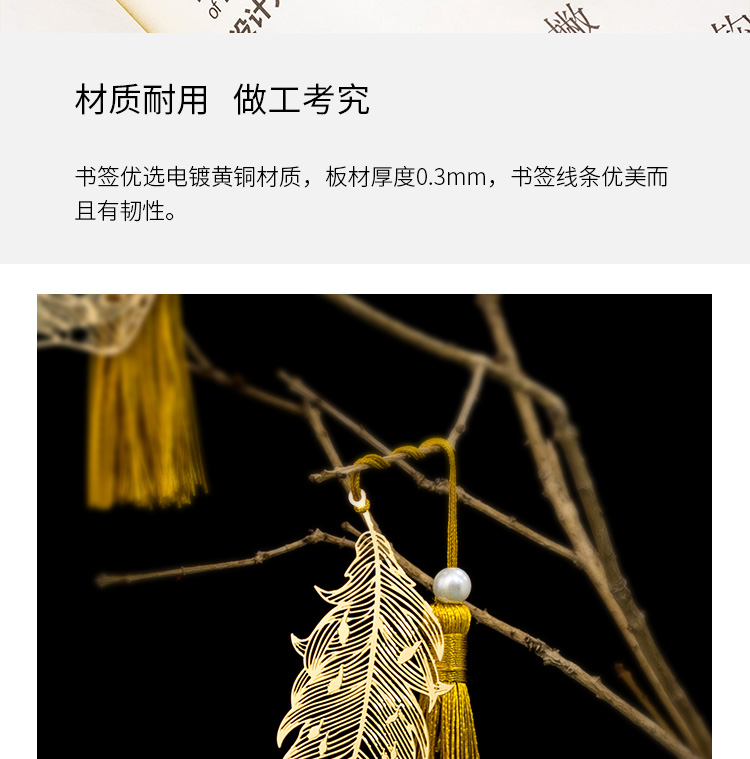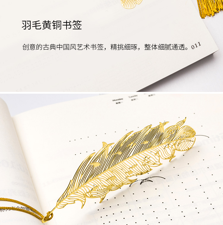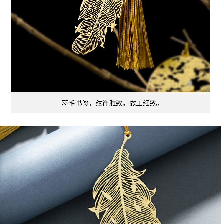 天色 5盒装黄铜羽毛书签 创意金属古风书签 三八妇女节礼物TS-5855 羽毛 黄铜色