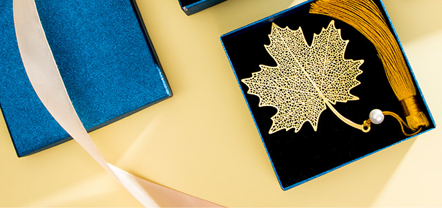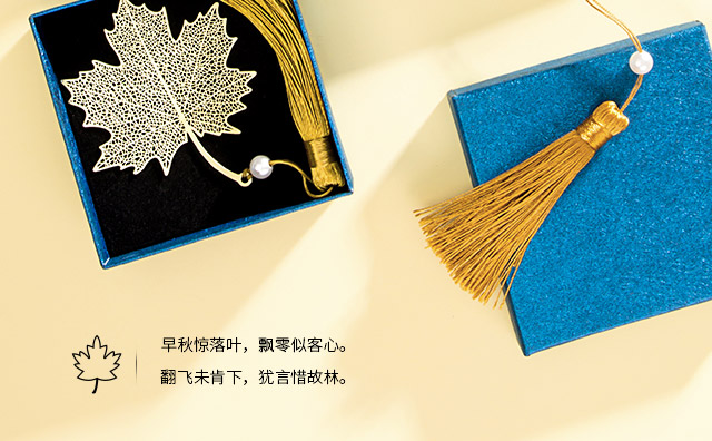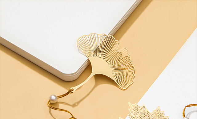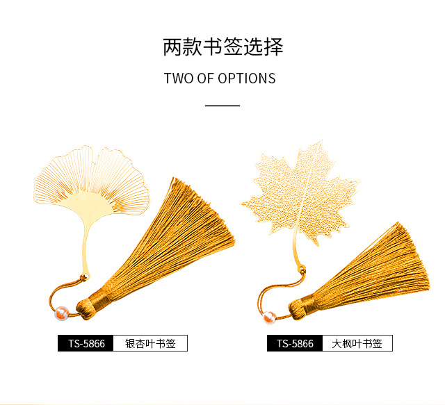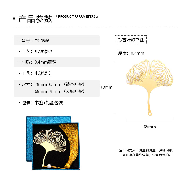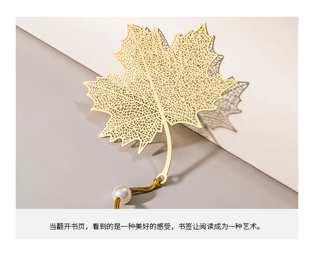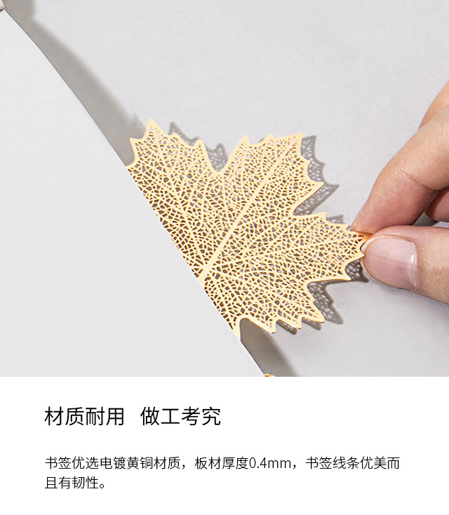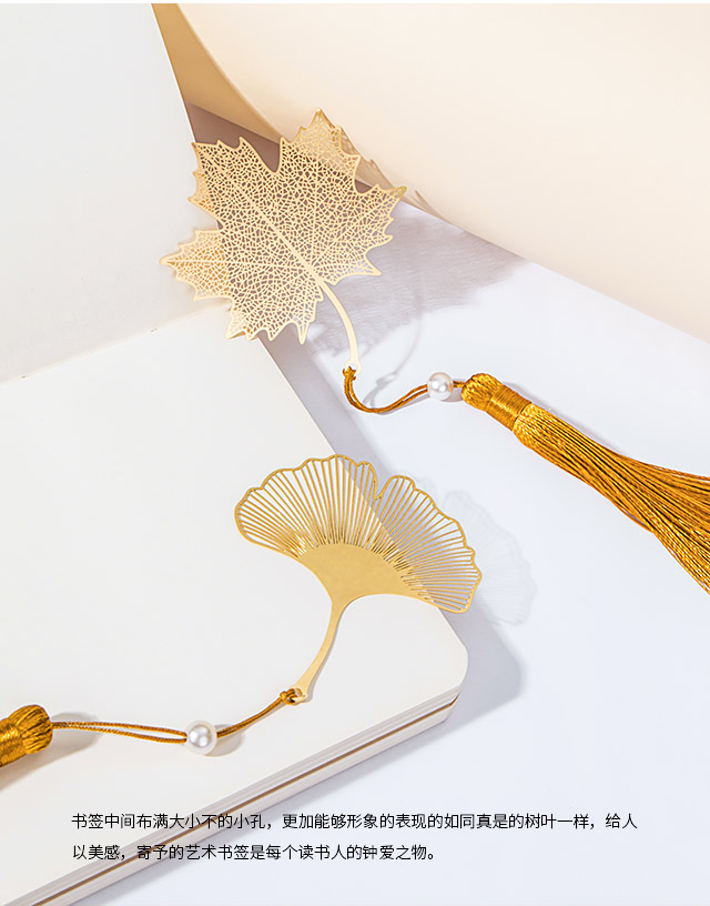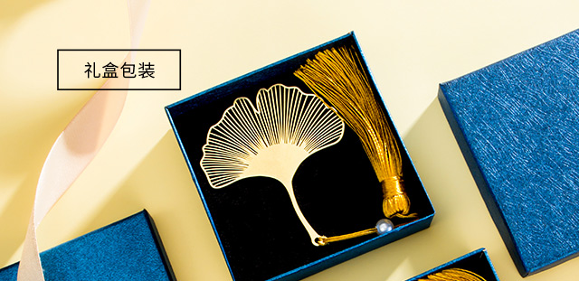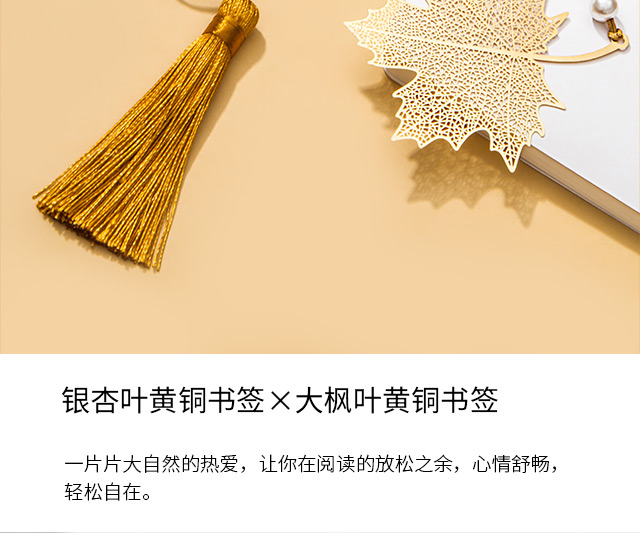 天色 5盒装黄铜叶脉书签 创意金属古风书签文具 教师节三八妇女节礼物TS-5866 银杏叶 黄铜色