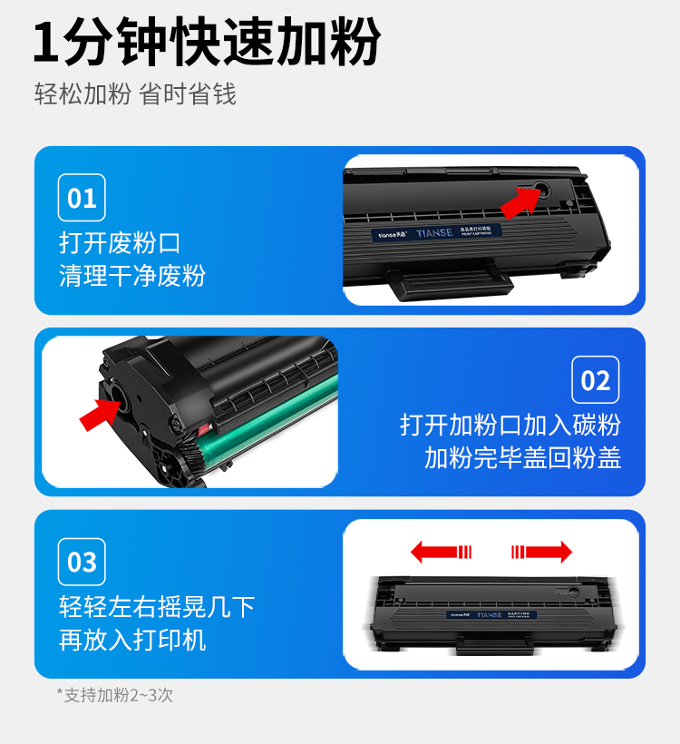 天色MLT-D111S硒鼓 2支装适用三星M2020硒鼓M2070 M2020W M2021墨盒 黑色