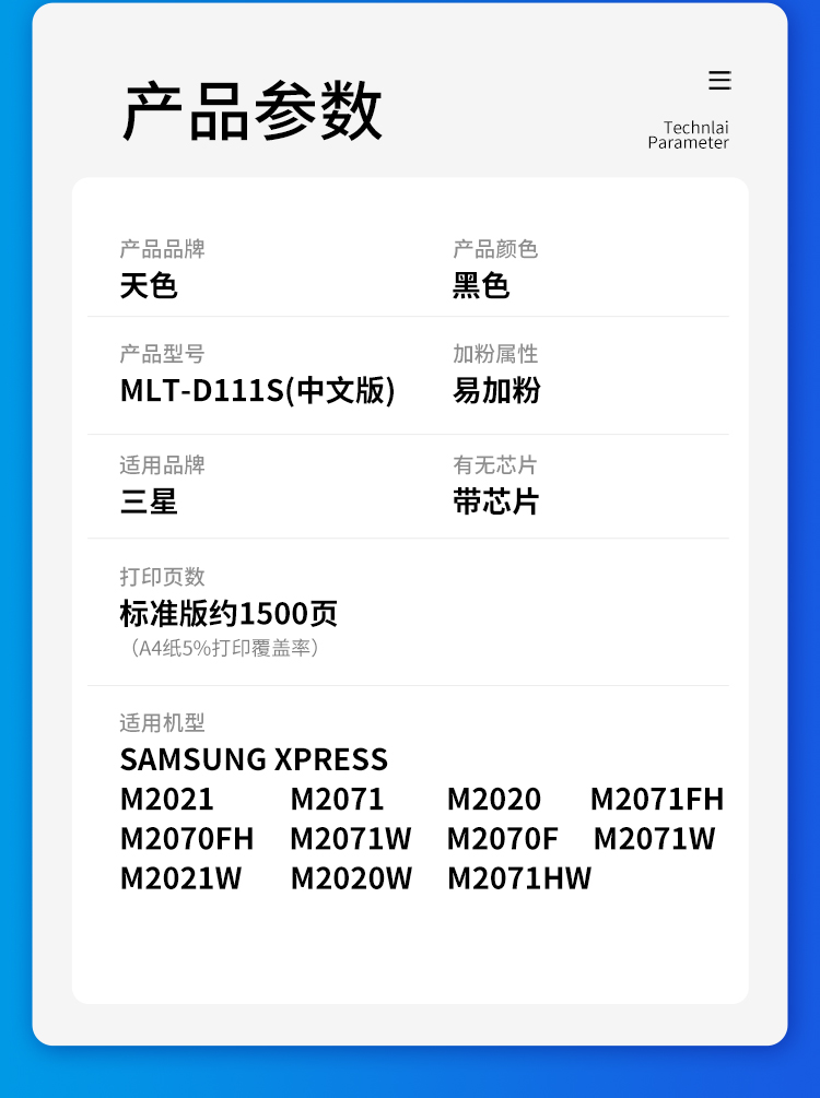天色适用三星m2071硒鼓MLT-D111S M2070 M2020 M2021 M2022 黑色