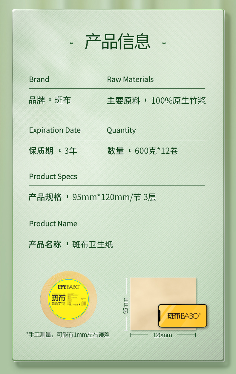 斑布卫生纸大盘纸珍宝纸600克12卷装DBZB600 本色