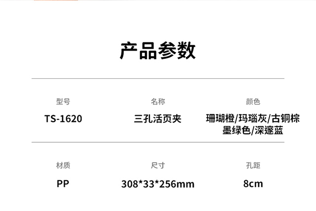 天色 5只三孔文件夹打孔 A4活页夹插页资料册 彩色穿孔大容量加厚强力夹快劳夹 TS-1620古铜棕 古铜棕