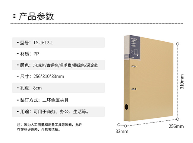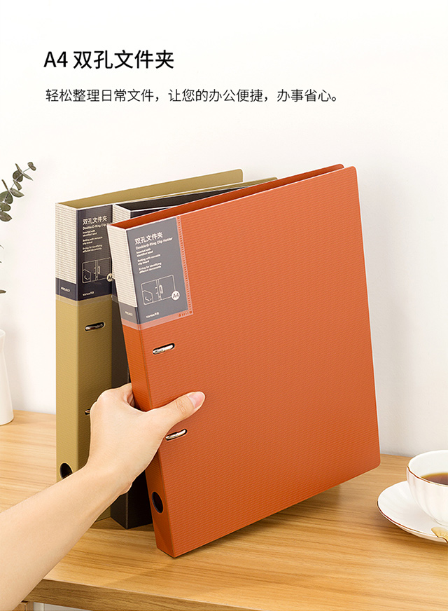 天色 5只双孔文件夹打孔 A4活页夹插页资料册 穿孔二孔大容量快劳夹试卷夹TS-1612-1 玛瑙灰