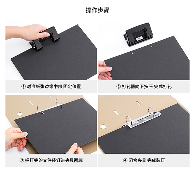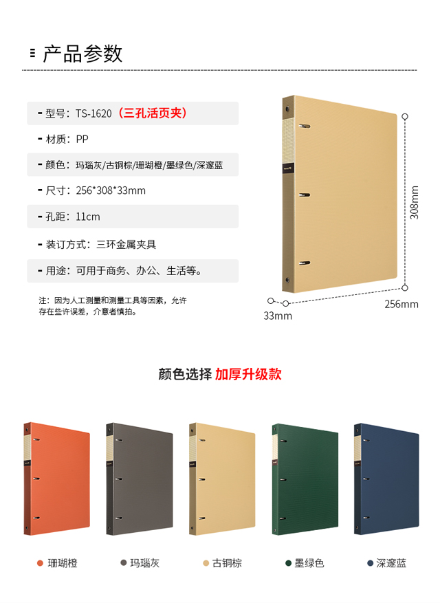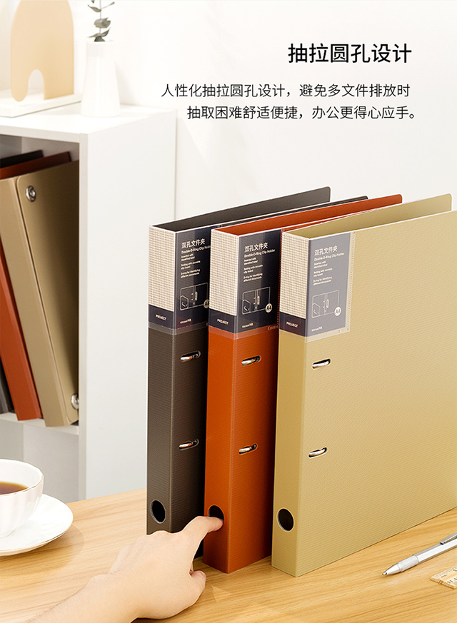 天色 5只双孔文件夹打孔 A4活页夹插页资料册 穿孔二孔大容量快劳夹试卷夹 TS-1612-1 古铜棕