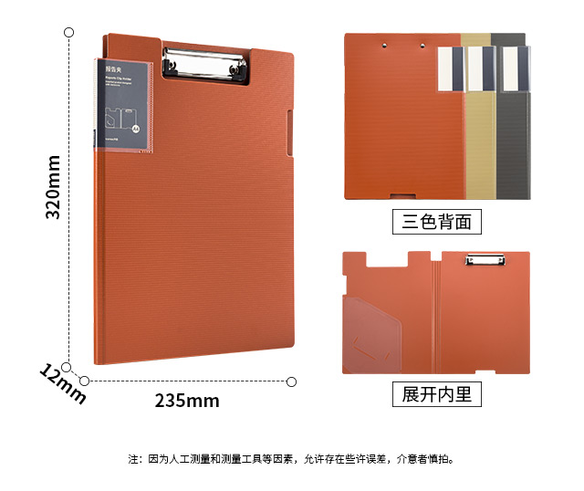天色5个A4文件夹板竖式折页板夹加厚发泡PP会议夹秘书夹资料夹试卷夹呈阅夹办公用品 TS-1632 古铜棕