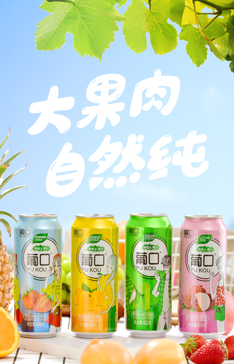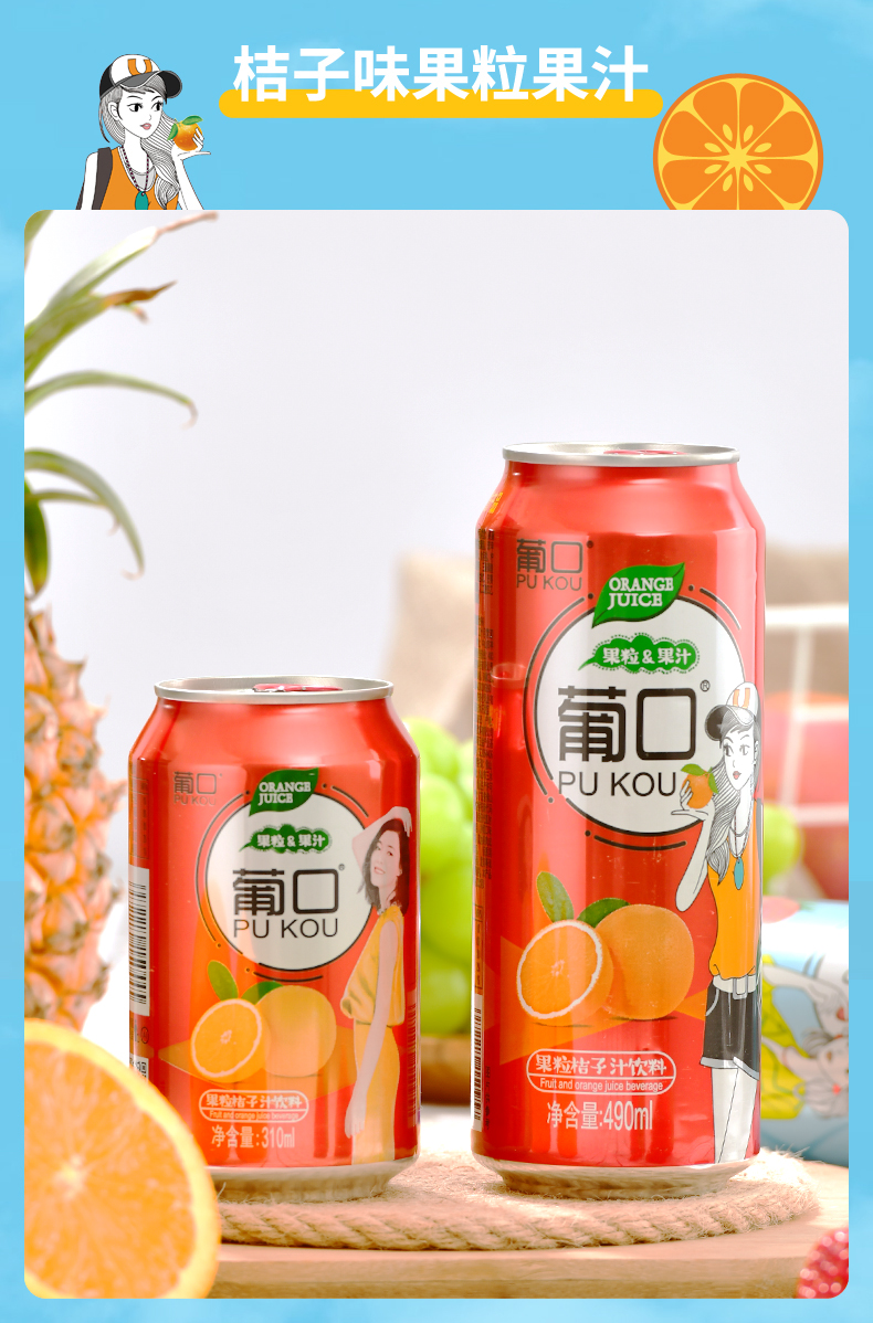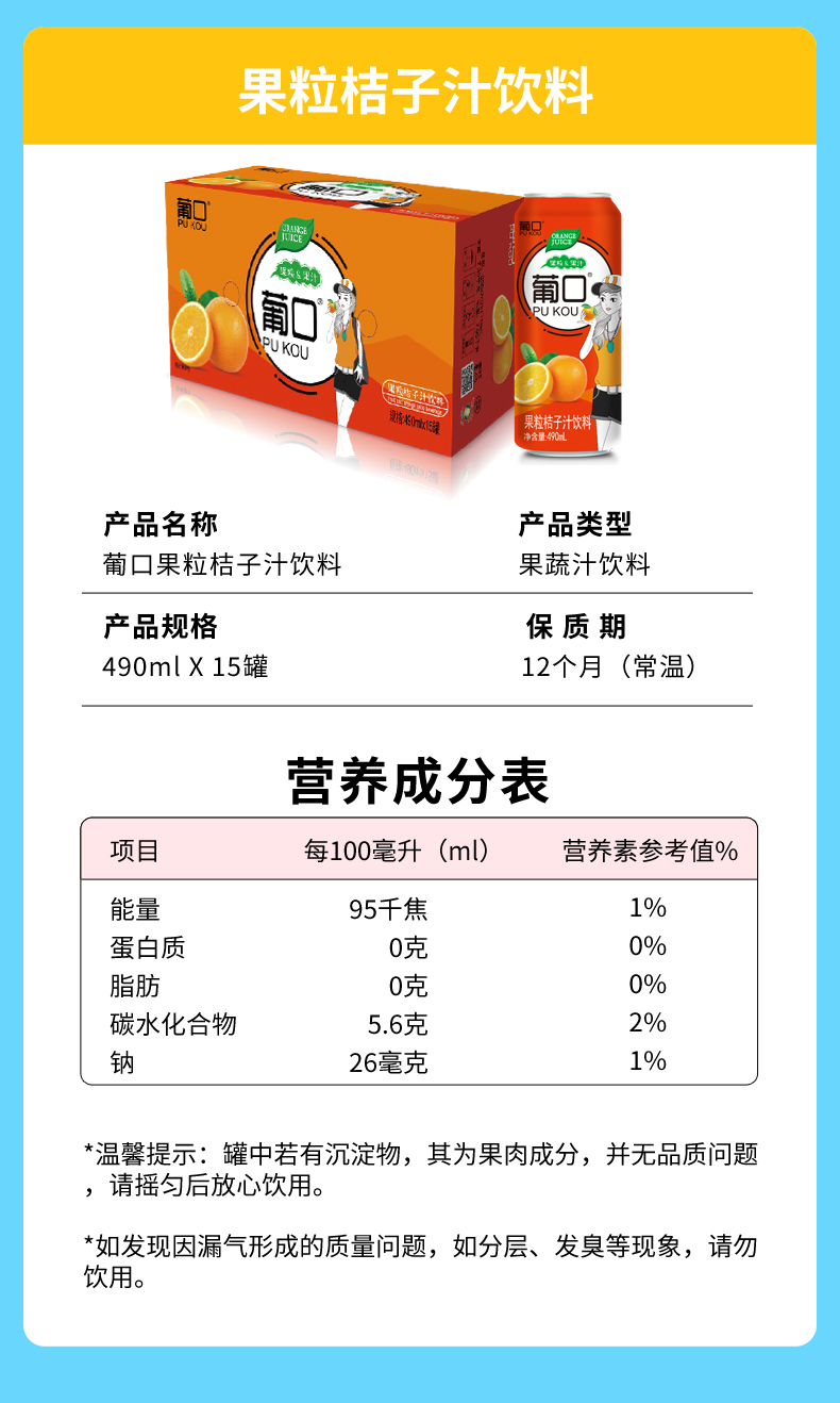 葡口 果汁饮料 桔子汁果肉粒果汁整箱 490ml*15罐 灰橙色