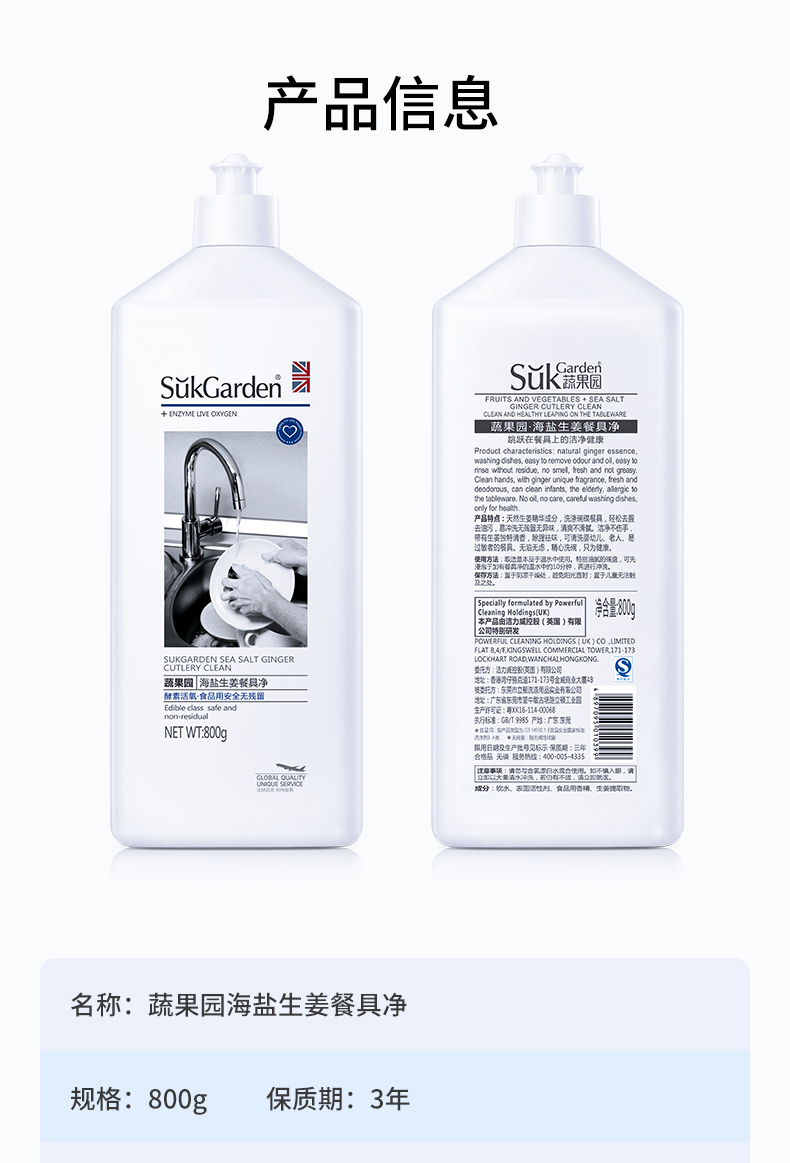 SukGarden蔬果园海盐生姜餐具净(食用级安全无残留)(单位:瓶) SGY0031