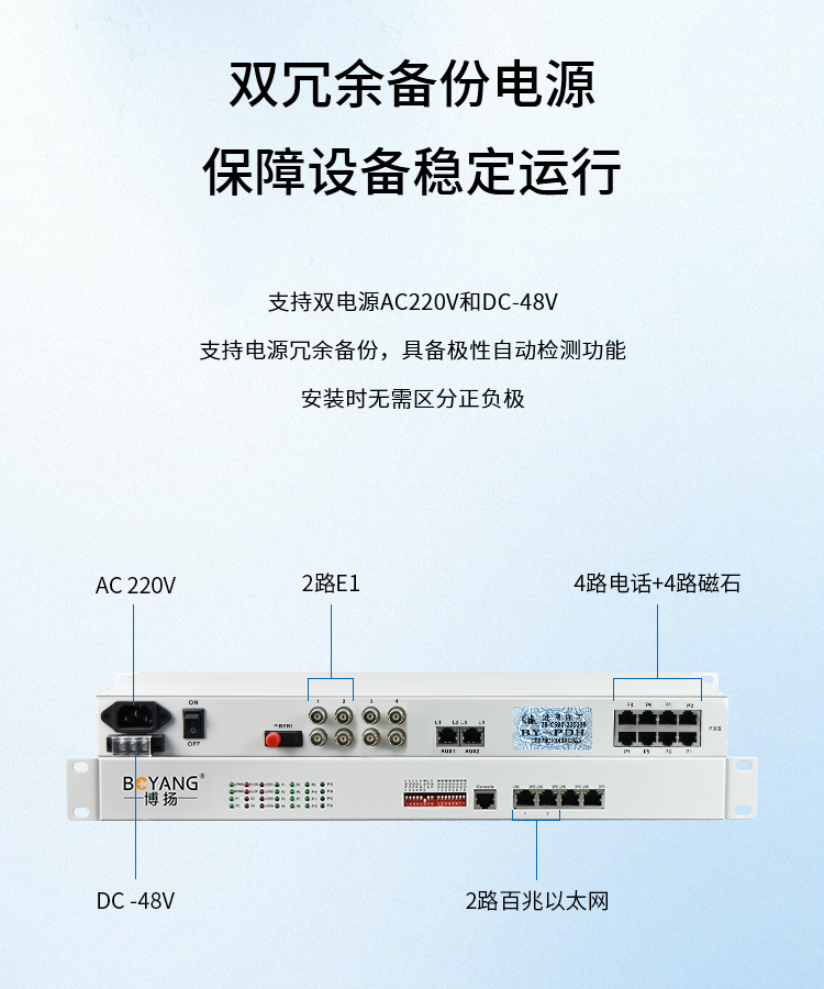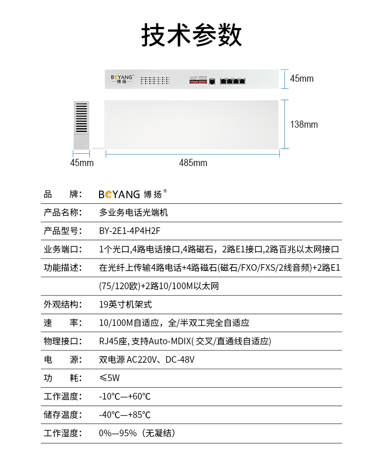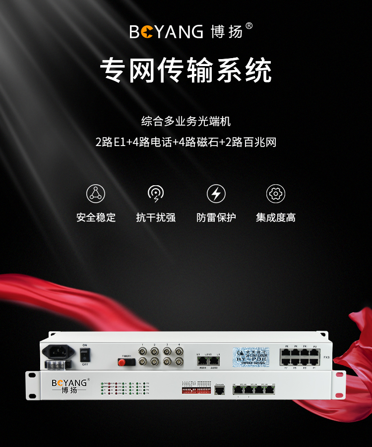 博扬 多业务光端机 2路E1+4路电话+4路磁石+2路百兆网 单纤20km 机架式 1对价 BY-2 白色
