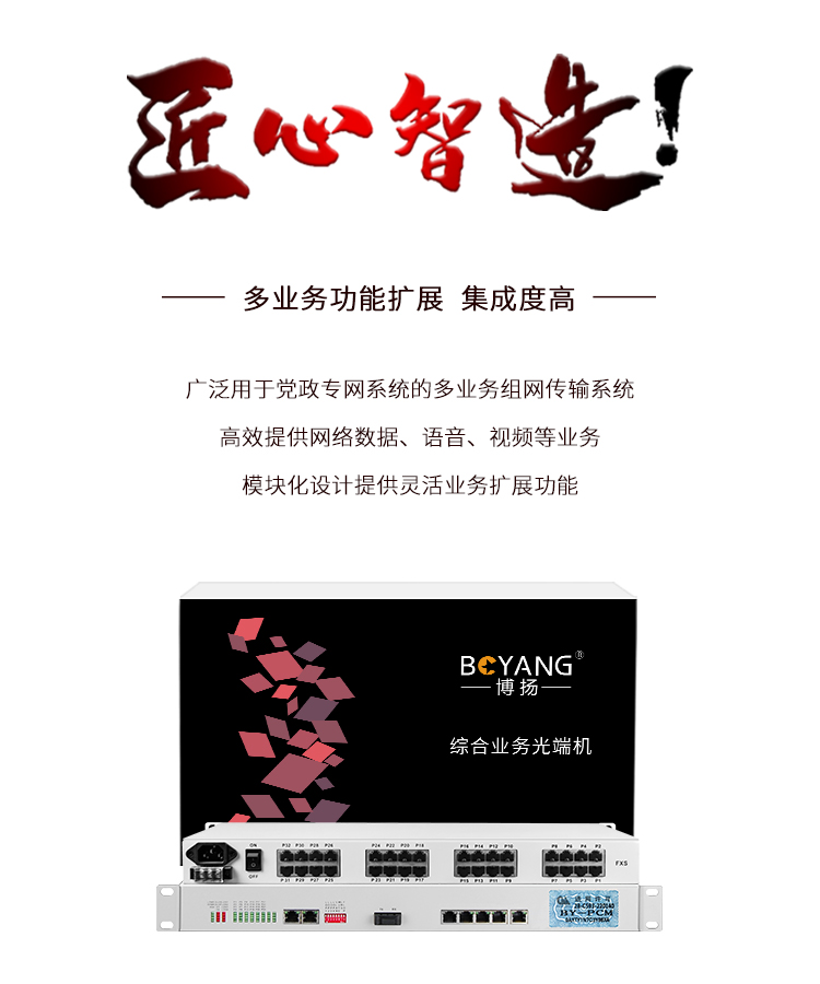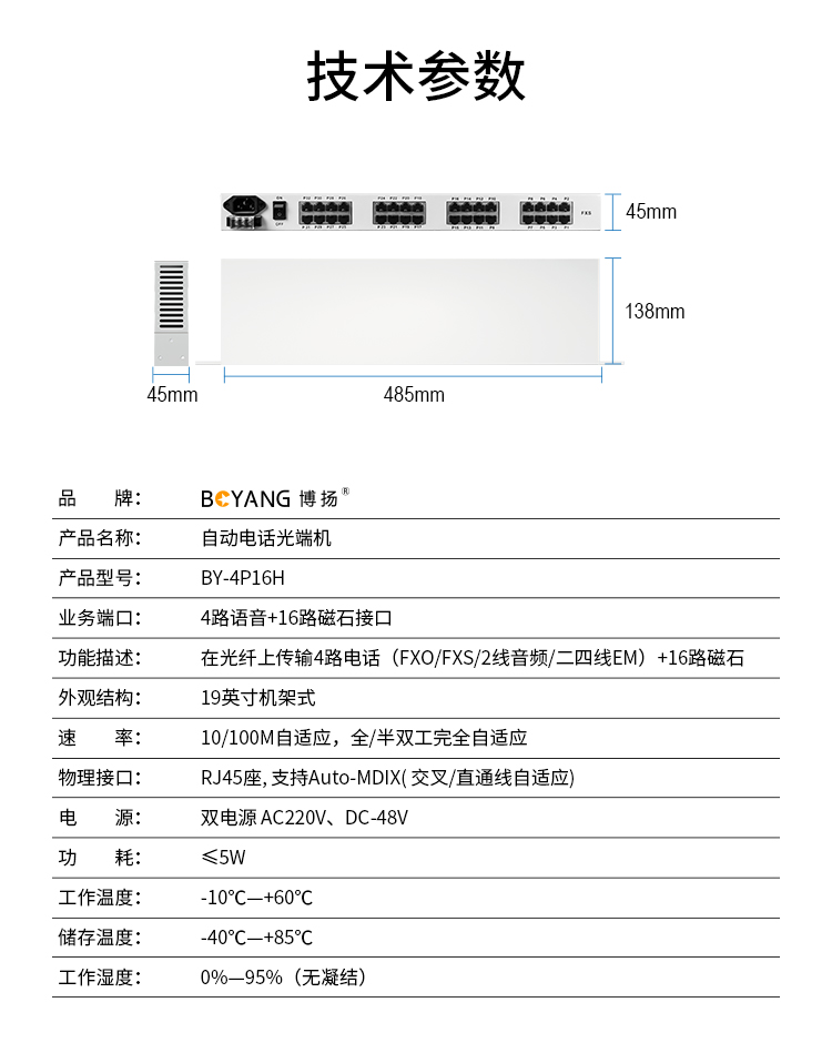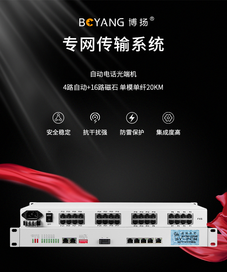 博扬 电话光端机 4路自动+16路磁石 单模单纤20KM 机架式 1对价 BY-4P16H 白色