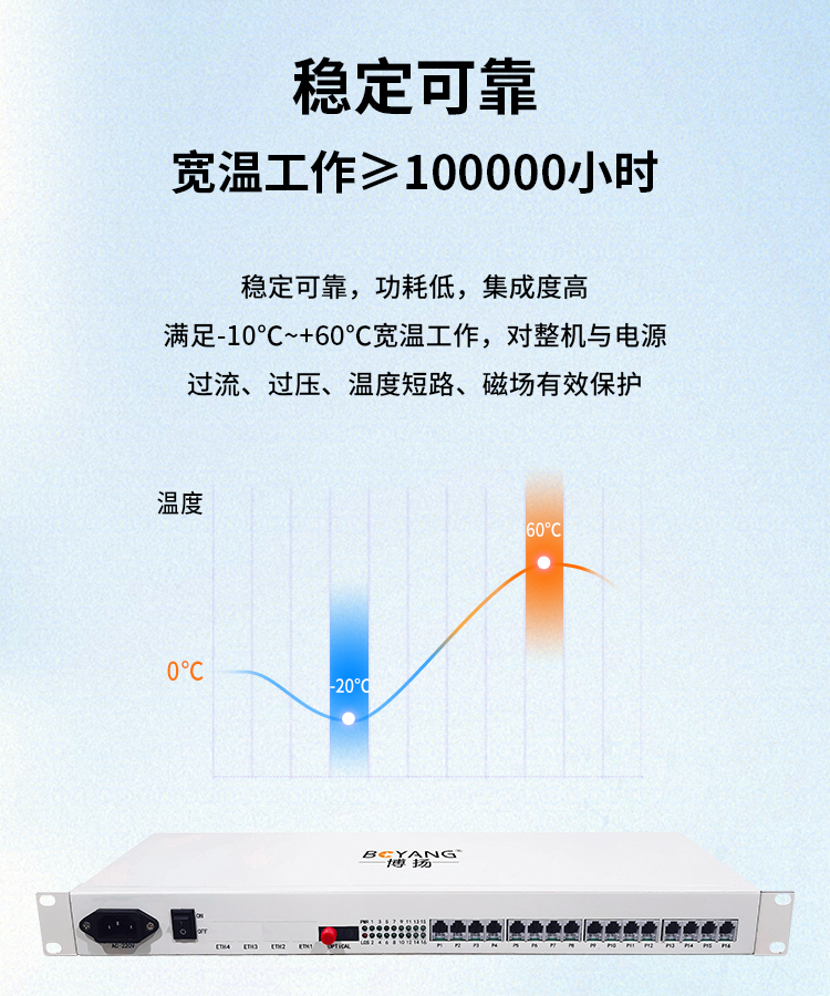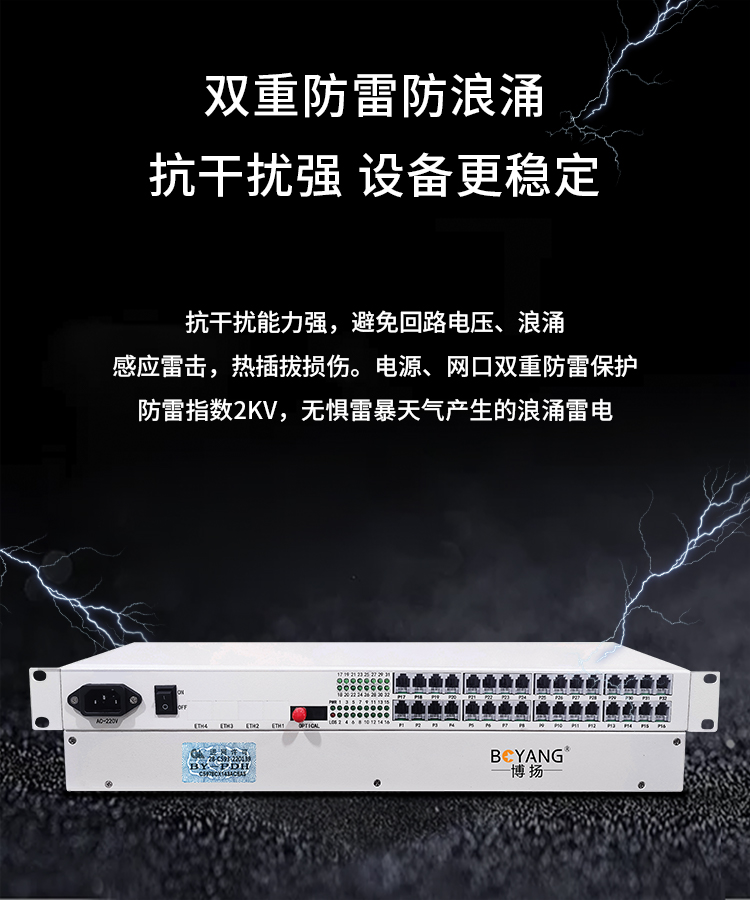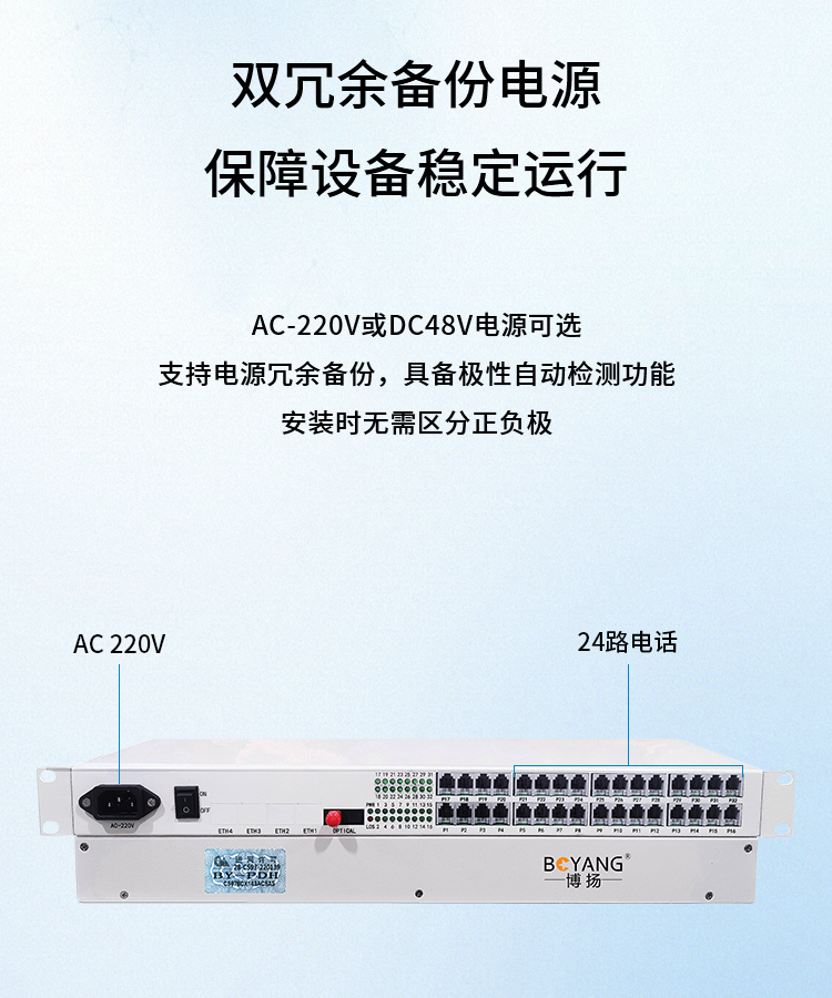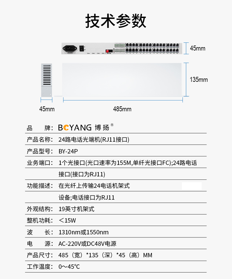 博扬(BOYANG) 24路电话光端机 RJ11语音电话光纤延长器 20km 单纤FC 1U机架式 白色