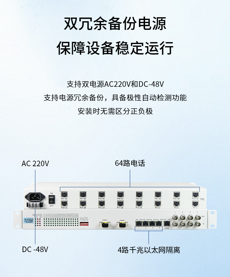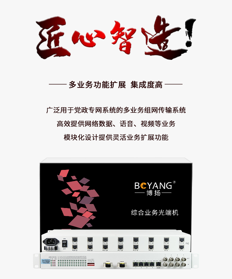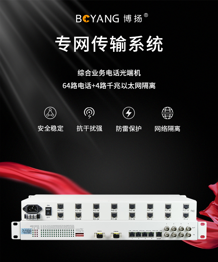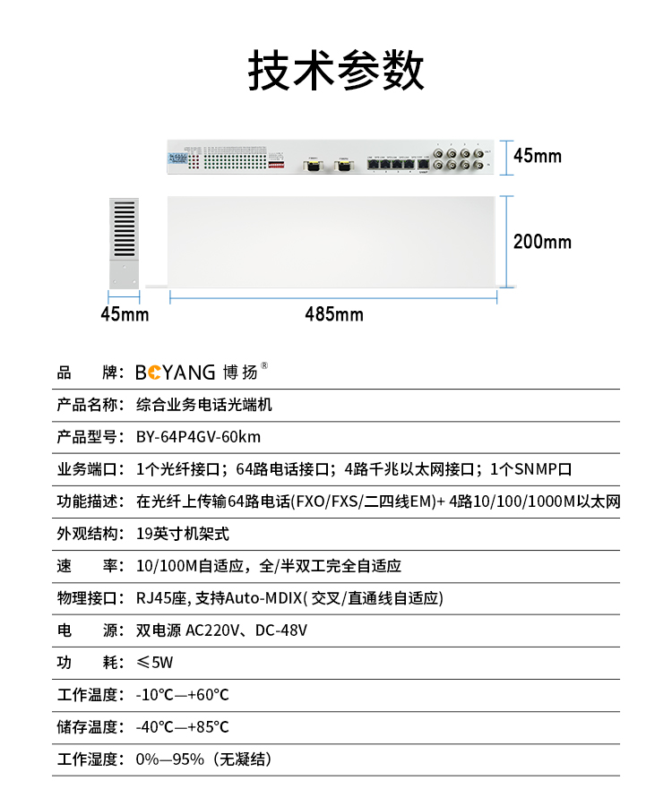 博扬 综合业务电话光端机 64路电话+4路千兆以太网隔离 单纤60km 机架式 1对价 白色
