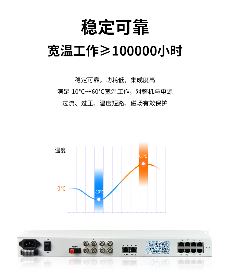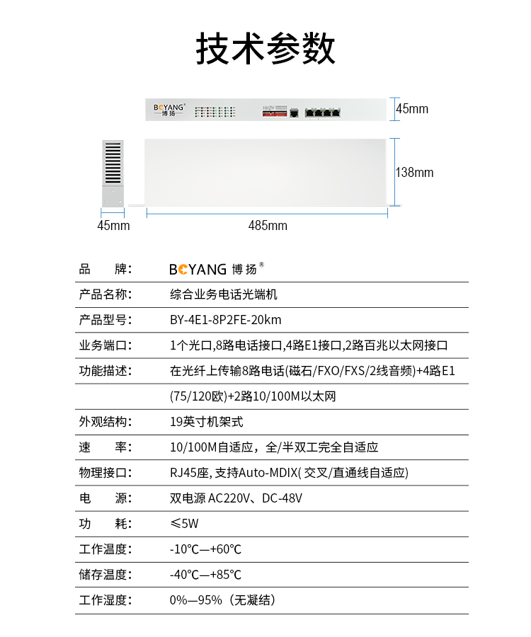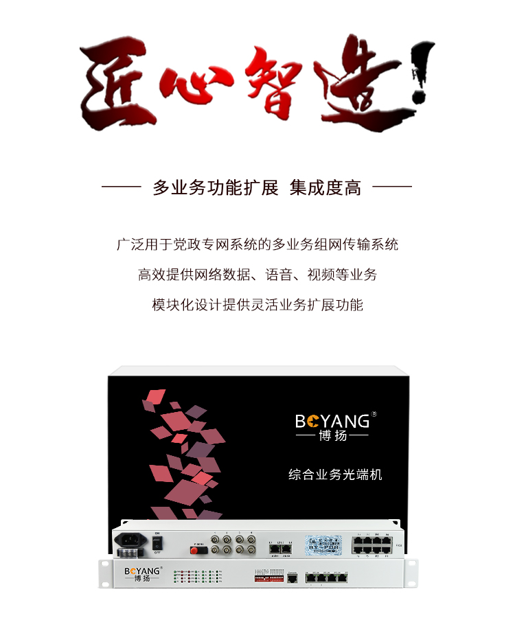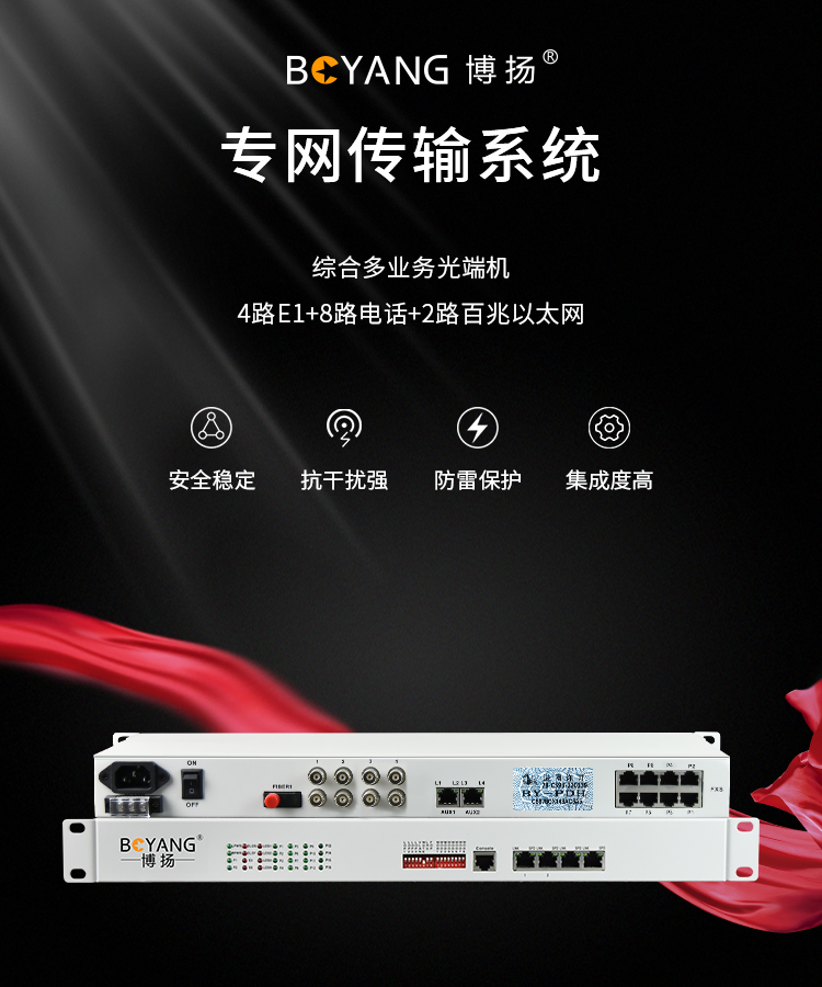 博扬 综合业务电话光端机 4路E1+8路电话+2路百兆以太网 20km 机架式一对价 白色